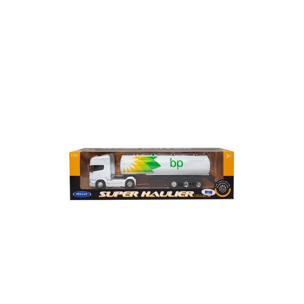 Kamión v mierke 1:64 značky Welly Scania V8 R730 BP OIL je 24,5 cm dlhý a 6 cm vysoký s detailne spracovaným exteriérom....