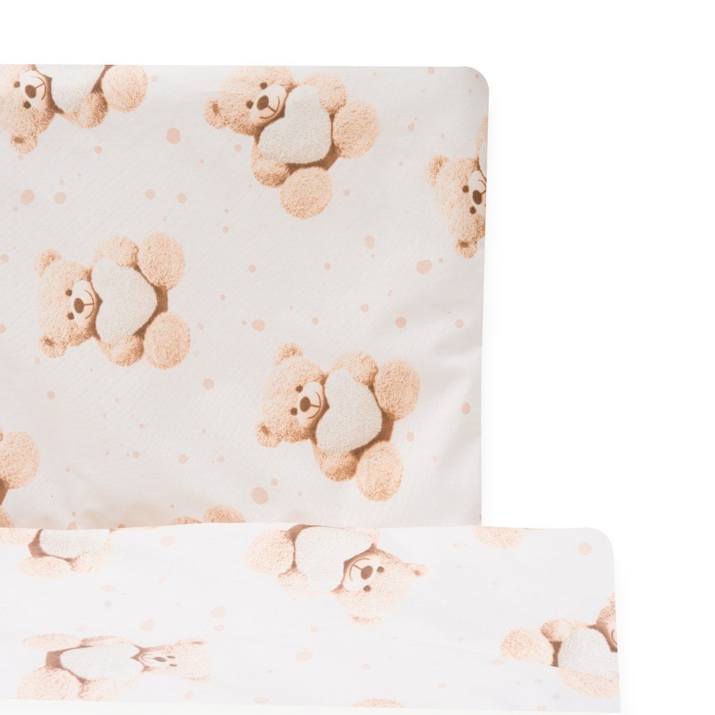 Detská 2-dielna súprava do postieľky New Baby Love Teddy Bear. Súprava je vyrobená zo 100% bavlny. Kvalitné prevedenie a nádherný detský motív. Obsahuje obliečky na vankúšik cca 40x60 cm + obliečky na perinku cca 120x90 cm. Materiál 100% bavlna.