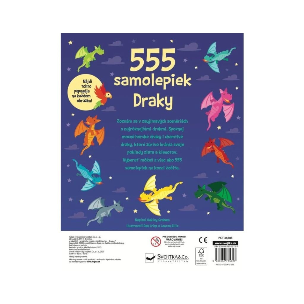 Viac ako 555 samolepiek čaká na teba a tvoju predstavivosť v tomto úžasnom zošite! Zoznám sa s najrôznejšími drakmi v zaujímavých scenériách. Spoznaj mocných horských drakov aj chamtivých drakov, ktorí zúrivo bránia svoje poklady plné zlata a klenotov. Doplň podľa vlastnej fantázie nespočetné množstvo samolepiek do nápaditých a veselých scén. Rozmer (cm)