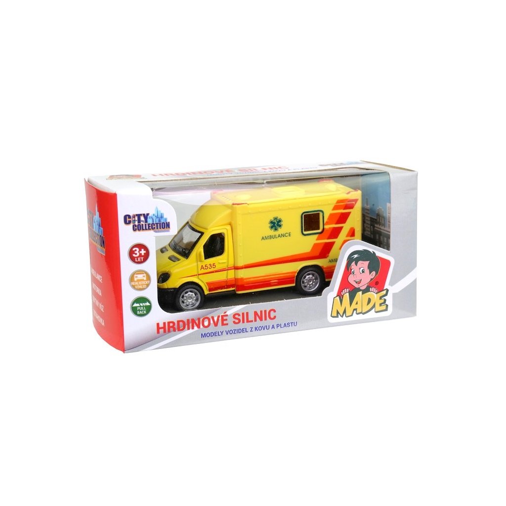 Ambulancie kovová so spätným chodom. Bude robiť radosť vášmu malému záchranárovi. Ambulancie Vás úplne uchvátia svojim realistickým vzhľadom. Má otváracie dvere na ľahké naloženie zranených osôb.