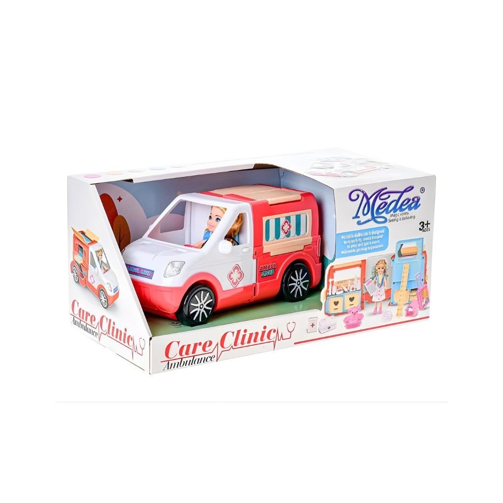 Pojazdná detská ambulancia s dĺžkou 22 cm obsahuje bábiku veľkú 14 cm, zdravotnícke pomôcky, kufrík, zvieratko, búdu a ďalšie doplnky pre ešte realistickejšiu hru na záchranárku. Ideálny darček pre malé dievčatá, ktoré milujú starostlivosť o pacientov a dobrodružné záchranné misie. Rozmer (cm)