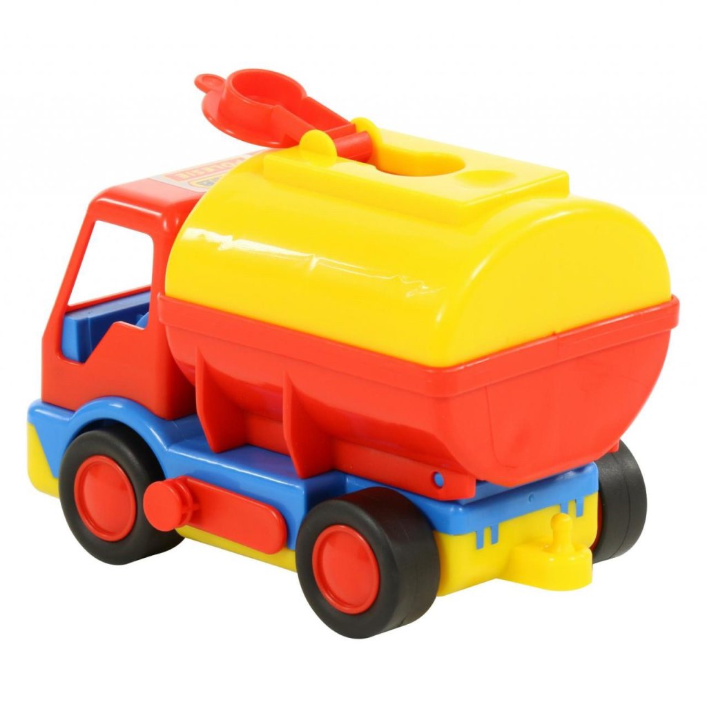 Auto na gumených pneumatikách, mechanicky ovládané vyklápanie cisterny s uzatváracím otvorom vo vrchnej časti. Hračka je certifikovaná pre deti od 1 roku veku od renomovanej značky Wader ...