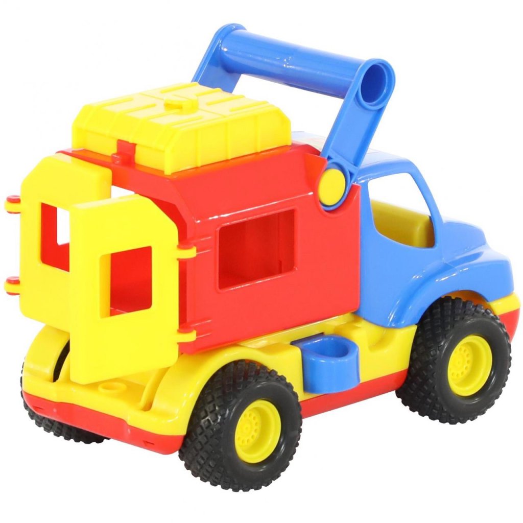 Auto ConsTruck skriňové s gumenými pneumatikami, s praktickou rukoväťou, mechanickým otváraním zadných dverí, s otváraním boxu na streche a aretáciou prepravnej polohy skrine s možnosťou vyklopenia.
