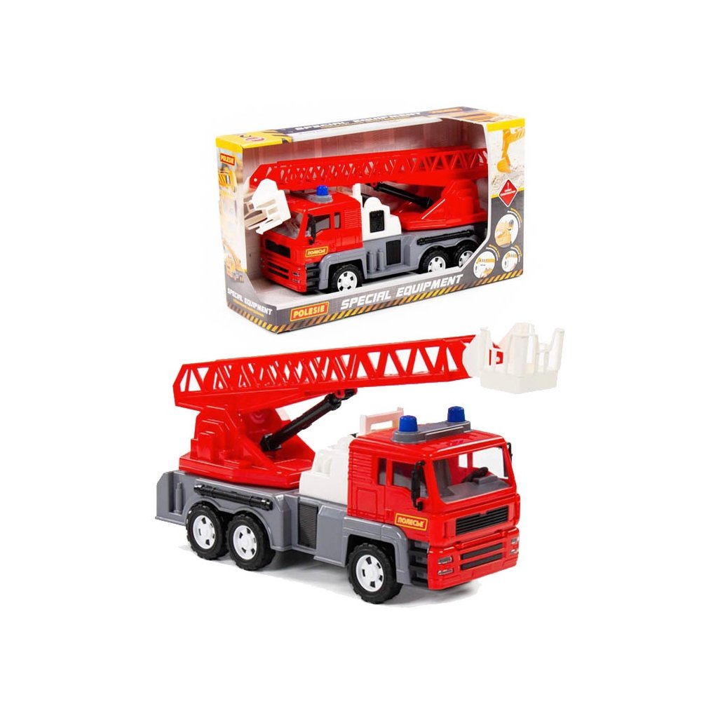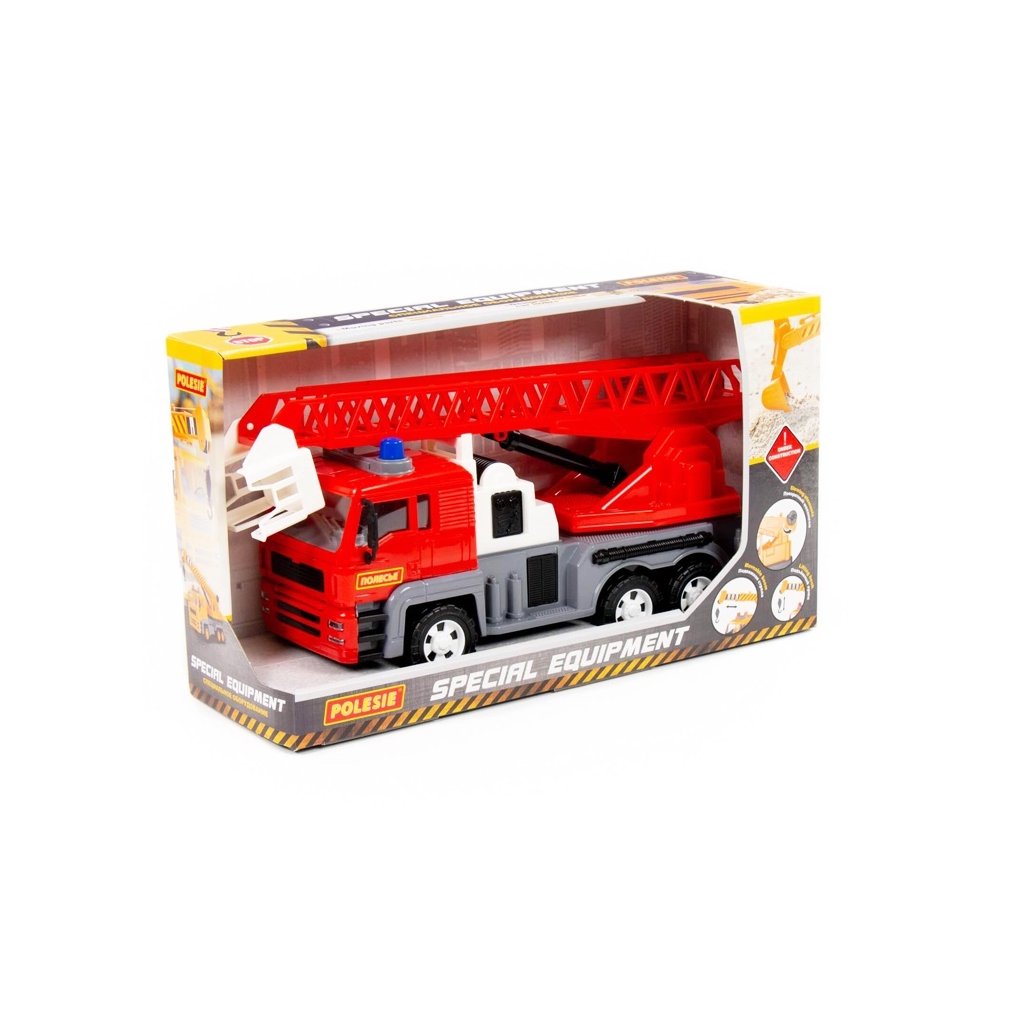 Hračka má pohyblivý otočný tanier a zasúvateľný výložník, ktorý je možné zdvihnúť a spustiť. Dizajn auta predpokladá prítomnosť troch párov kolies. Auto má navyše prvky, ktoré opakujú dizajn skutočného vybavenia skutočného protipožiarneho vybavenia, spestria a doplnia hru! Rozmer (cm)
