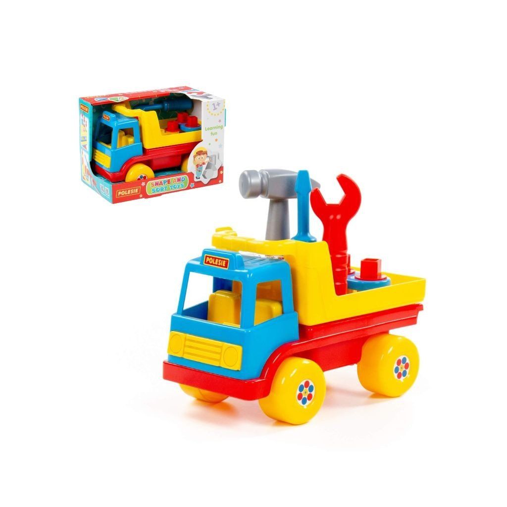 Auto s náradím je didaktická hračka pre najmenšie deti, ktorá kombinuje vozidlo a pracovný set s nástrojmi. Korbičku je možné odklopiť pomocou rukoväte nad kabínou a vnútri sa nachádzajú otvory na zatĺkanie 3 klincov a skrutkovanie 3 skrutiek pomocou kladiva, skrutkovača a kľúča. Okrem toho možno do korby ukladať aj ďalšie drobné predmety, pričom hra rozvíja jemnú motoriku, logické myslenie, pamäť aj predstavivosť. Rozmer (cm)