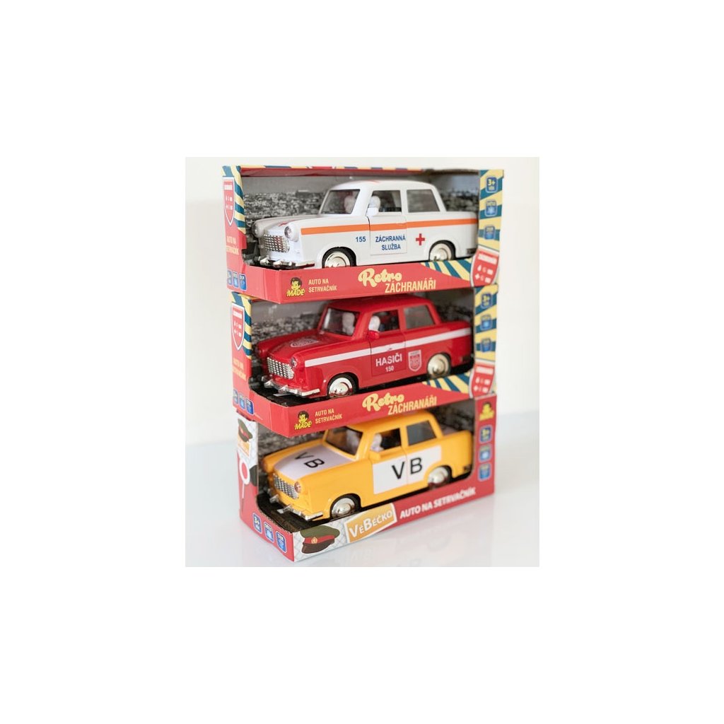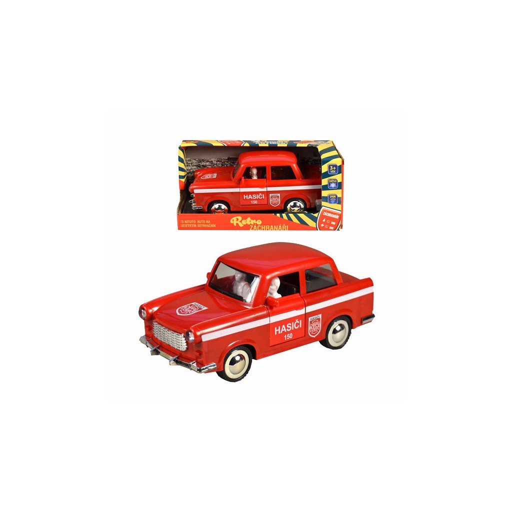 Auto Trabant požiarny so zvukom je 18 cm dlhé s pohonom na zotrvačník, s otváracími prednými dverami. Po vybratí poistky a stisnutí auta zasvietia predné svetlomety so zvukom štartovania, ...