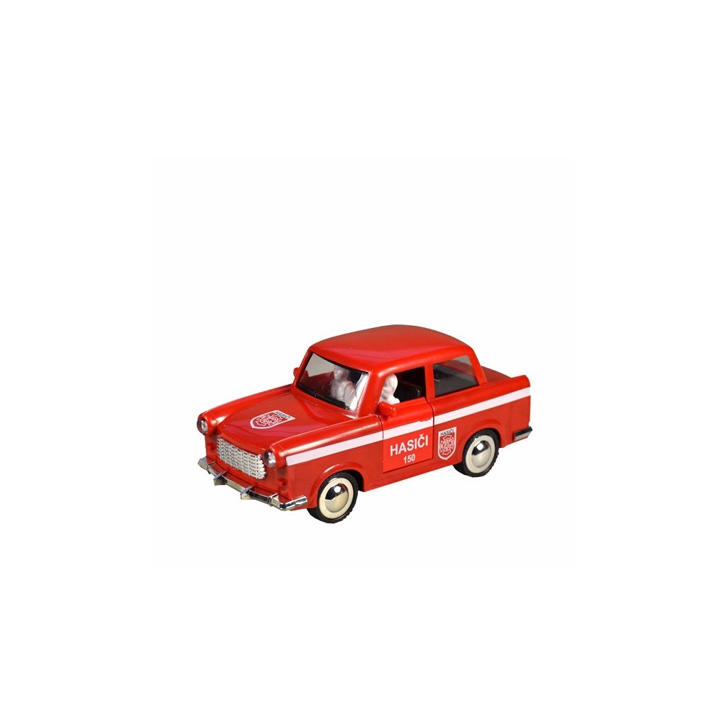 Auto Trabant požiarny so zvukom je 18 cm dlhé s pohonom na zotrvačník, s otváracími prednými dverami. Po vybratí poistky a stisnutí auta zasvietia predné svetlomety so zvukom štartovania, chodu motora a brzdenia. Rozmer (cm)