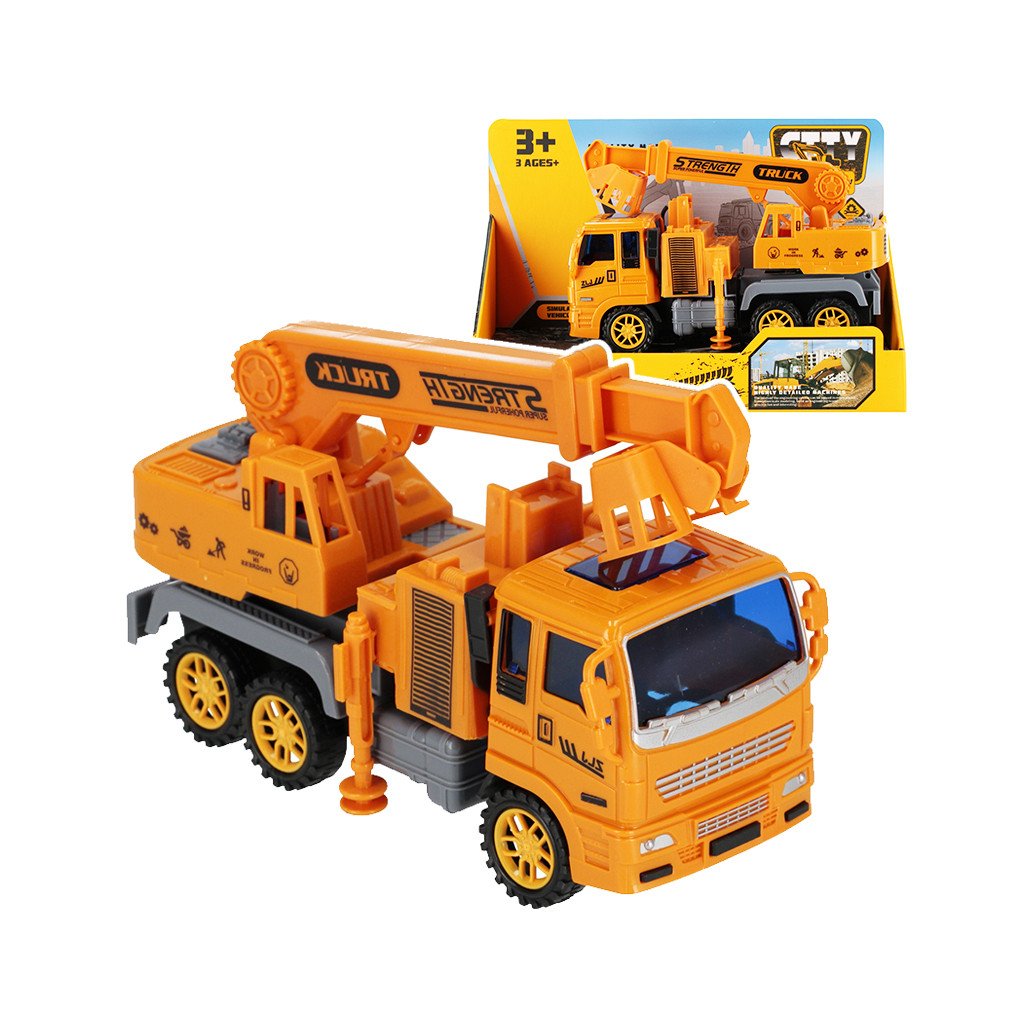 Auto žeriav pull&back, deti si môžu vyskúšať stavebné práce. Má pohyblivé časti a funkciu spätného chodu, ktorá umožňuje vozidlu pokračovať v jazde samostatne po zatlačení dopredu. Cena je za kus. Má rozmer 18x12x7 cm. Vhodné pre deti vo veku 3+ rokov. Rozmer (cm)