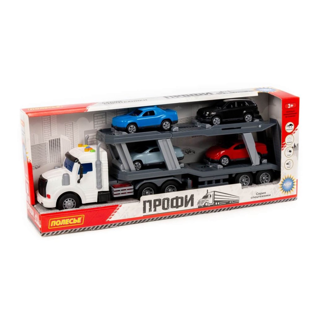 Autotransportér s efektmi je kvalitná, realistická hračka, ktorej dizajn dokonale kopíruje skutočnú vec. Toto špeciálne vozidlo má päť párov kolies na kovových nápravách. Kabína je vybavená štyrmi tlačidlami na ovládanie zvukových a svetelných signálov. Korba slúži aj ako skutočná platforma na nakladanie, spúšťanie a zdvíhanie automobilov. Sada obsahuje štyri vozidlá Optima. Rozmer (cm)
