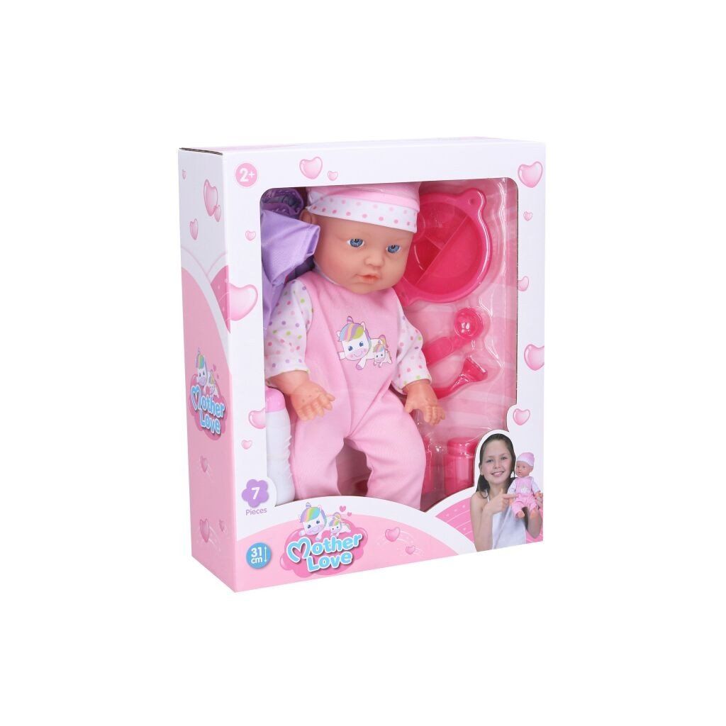 Roztomilé bábätko s doplnkami je ideálnou hračkou pre malé mamičky, ktoré sa rady starajú o svoje bábiky, balenie obsahuje bábätko v krásnom komplete s čiapočkou, fľaštičku, misku, lyžicu, vidličku, púder a krém, deti môžu bábätko kúpať, kŕmiť, obliekať a uspávať, čím rozvíjajú fantáziu, jemnú motoriku a sociálne zručnosti pri hre. Rozmer (cm)