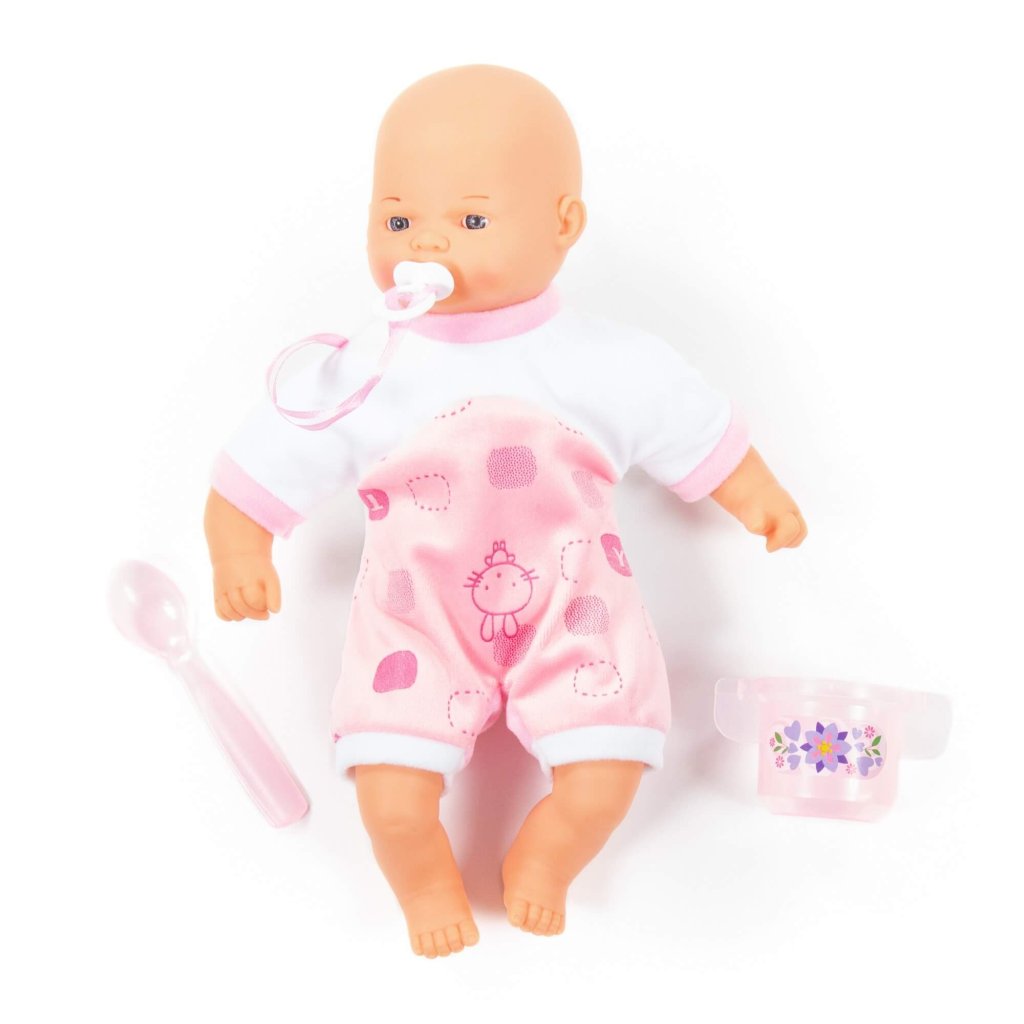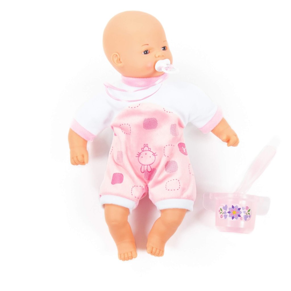 Hračka je vyrobená z kvalitných materiálov, má mäkko vypchaté telo, oči bábiky sa nezatvárajú. Sada obsahuje cumlík, ako aj sadu na kŕmenie - hrnček a lyžičku. Veľkosť bábätka je ...