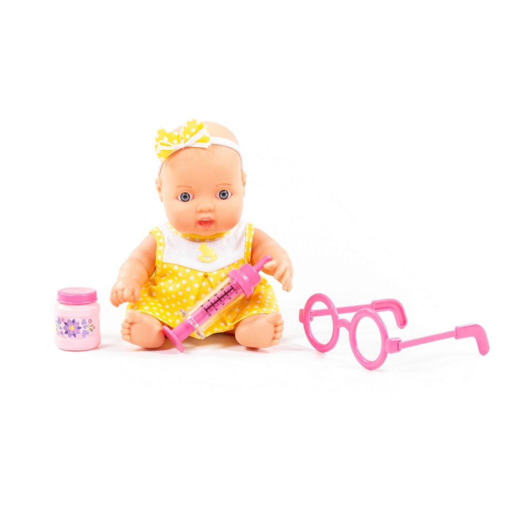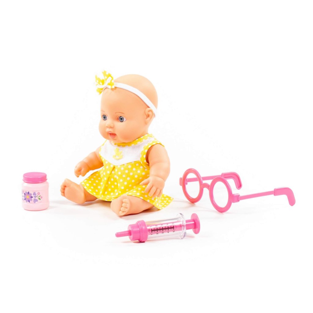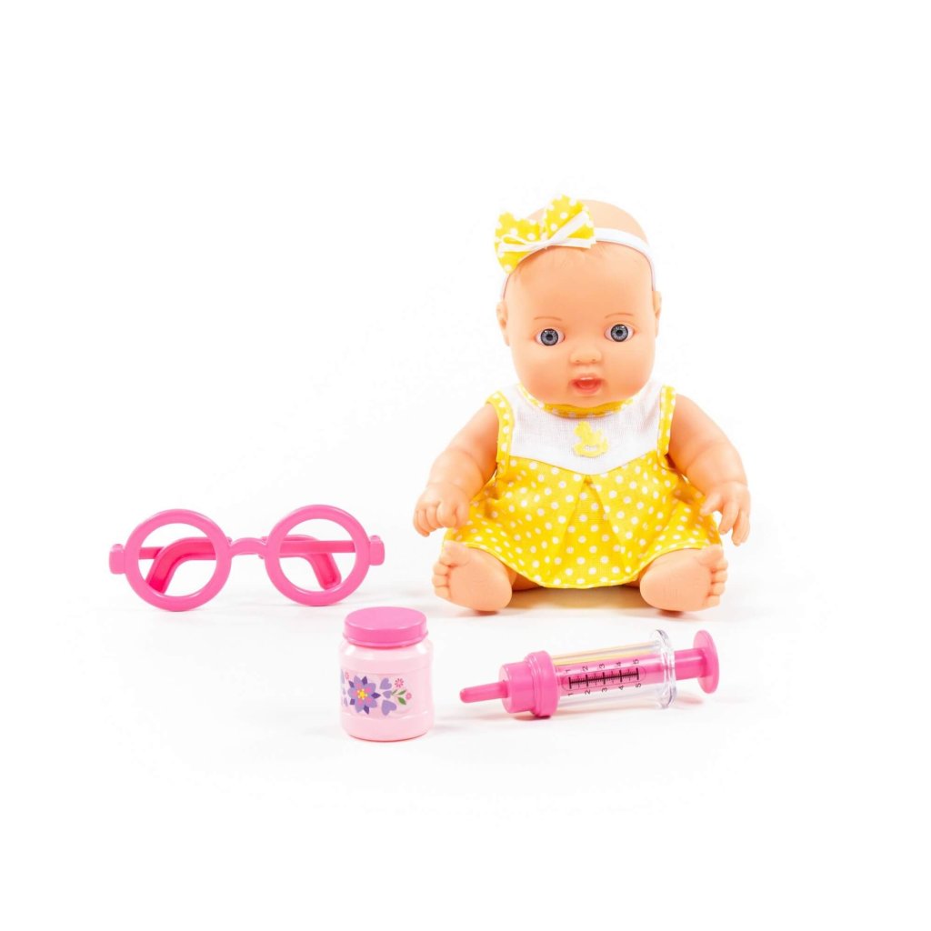 Hračka je vyrobená z kvalitných materiálov, oči bábiky sa nezatvárajú. Súčasťou bábiky je lekárska sada, ktorá sa skladá z 3 prvkov okuliare, injekčná striekačka a téglik napodobňujúci drogu. Veľkosť bábätka je 24 cm. Rozmer (cm)