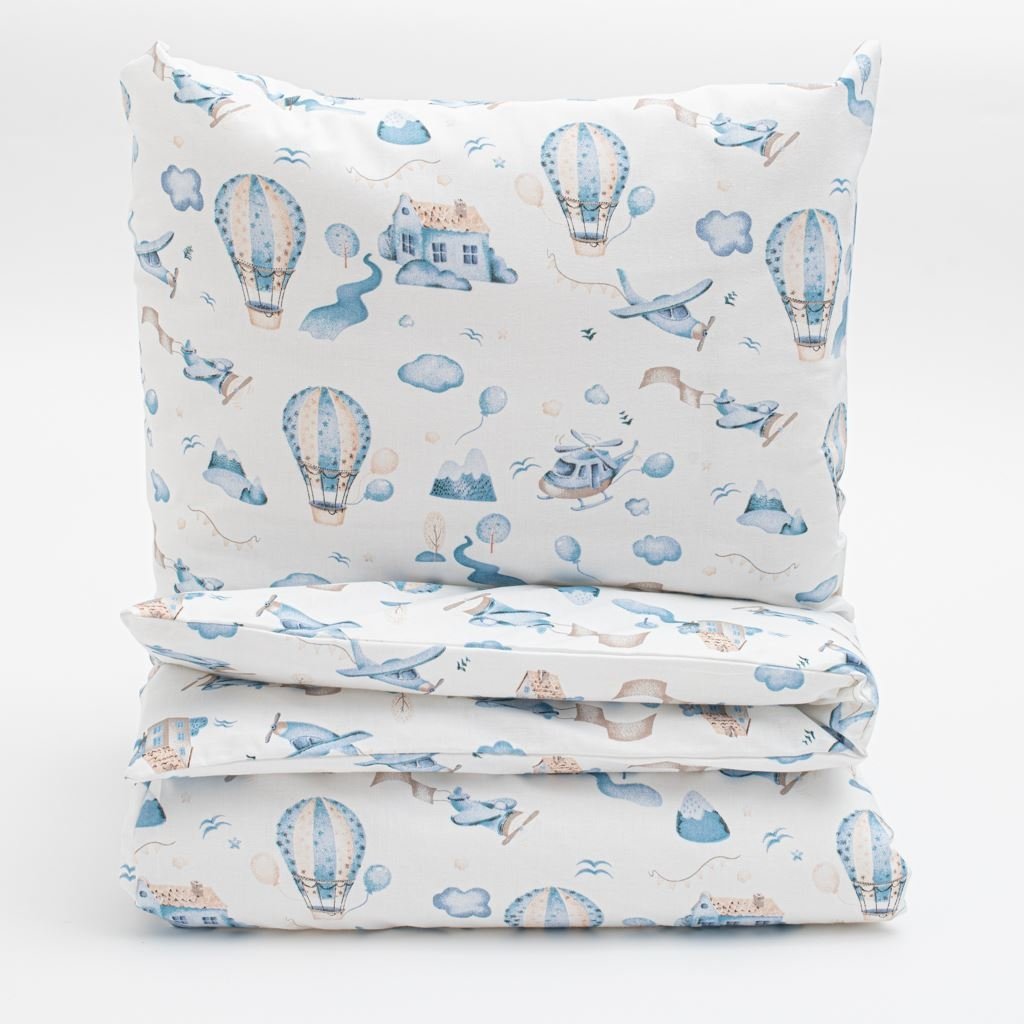 Nádherný bavlnený set do postieľky New Baby Ballerina Romance. Set obsahuje vankúšik a perinku s potlačou rozprávkového dobrodružstva v oblakoch. Všetko je vyplnené antialergickým vláknom. Set je ušitý z vysoko kvalitnej bavlny. Bavlnený set luxusne a jemne pohladí a zahreje pokožku vášho bábätka. Rozmery: vankúš: cca 60x40 cm, perinka: cca 90x120 cm. Zloženie: povlak 100% bavlna, výplň 100% polyester.