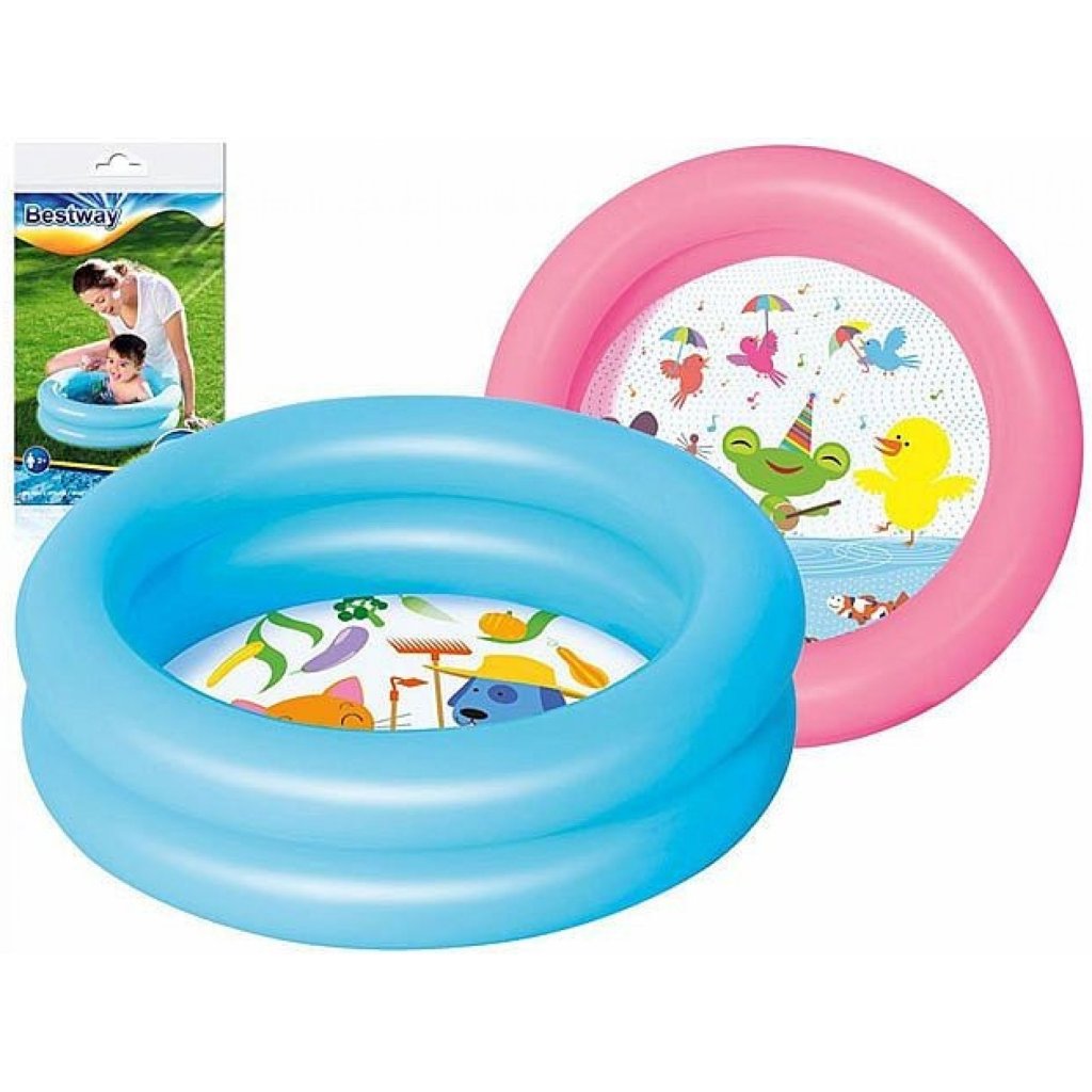Detský nafukovací bazénik v modrej a ružovej farbe je ideálny pre horúce letné dni. br Ľahko sa zmestí aj na väčší balkón. Farebný nafukovací bazénik pre malé deti je krásny, má 2 prstence, teda 2 vzduchové komory a na dne je potlačený farebný zvierací motív. Rozmer (cm)