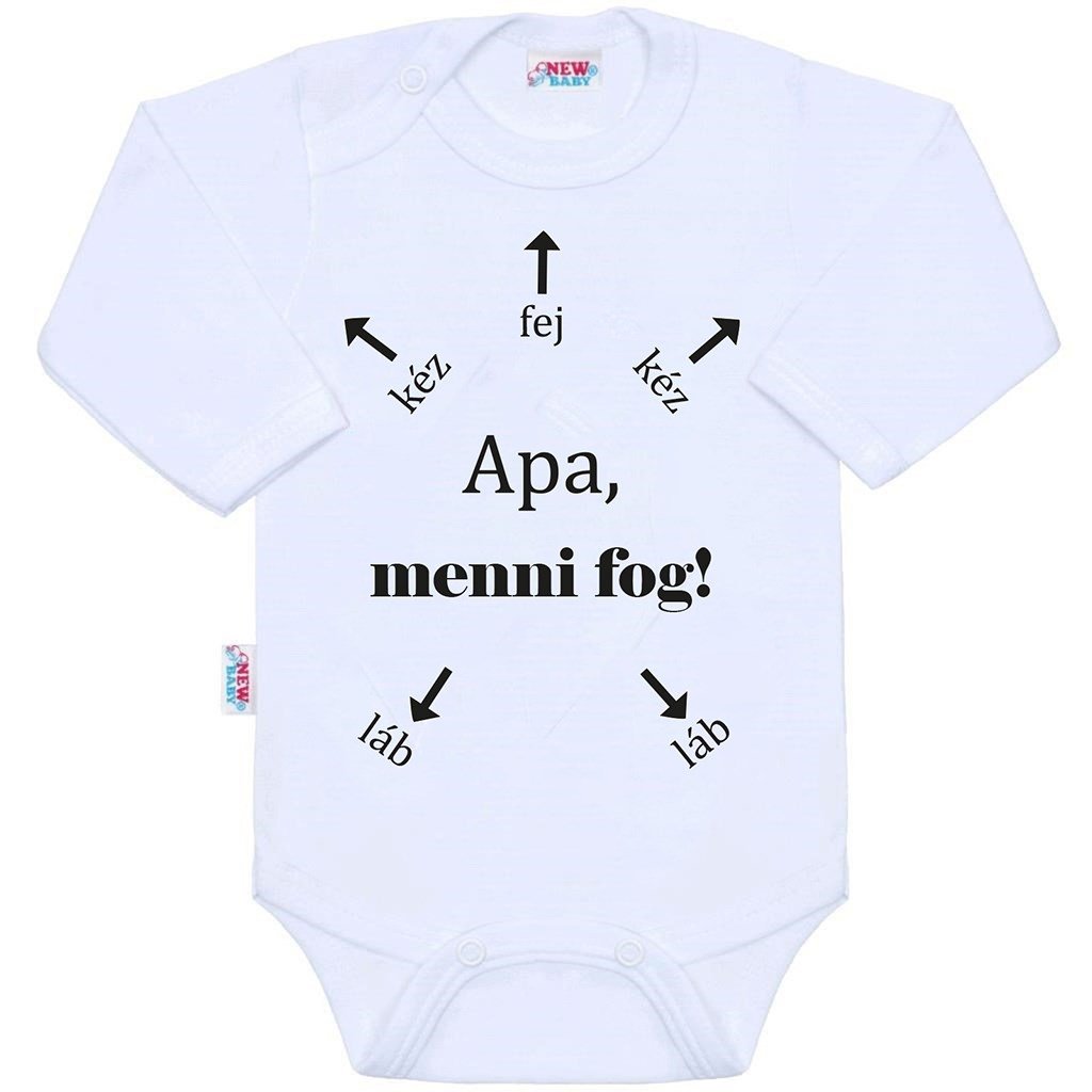 Originálne bavlnené dojčenské body s dlhým rukávom New Baby, s vtipným nápisom Apa, menni fog! Farby použité k potlači sú certifikované a vhodné pre bábätká. Je vyrobené z ...