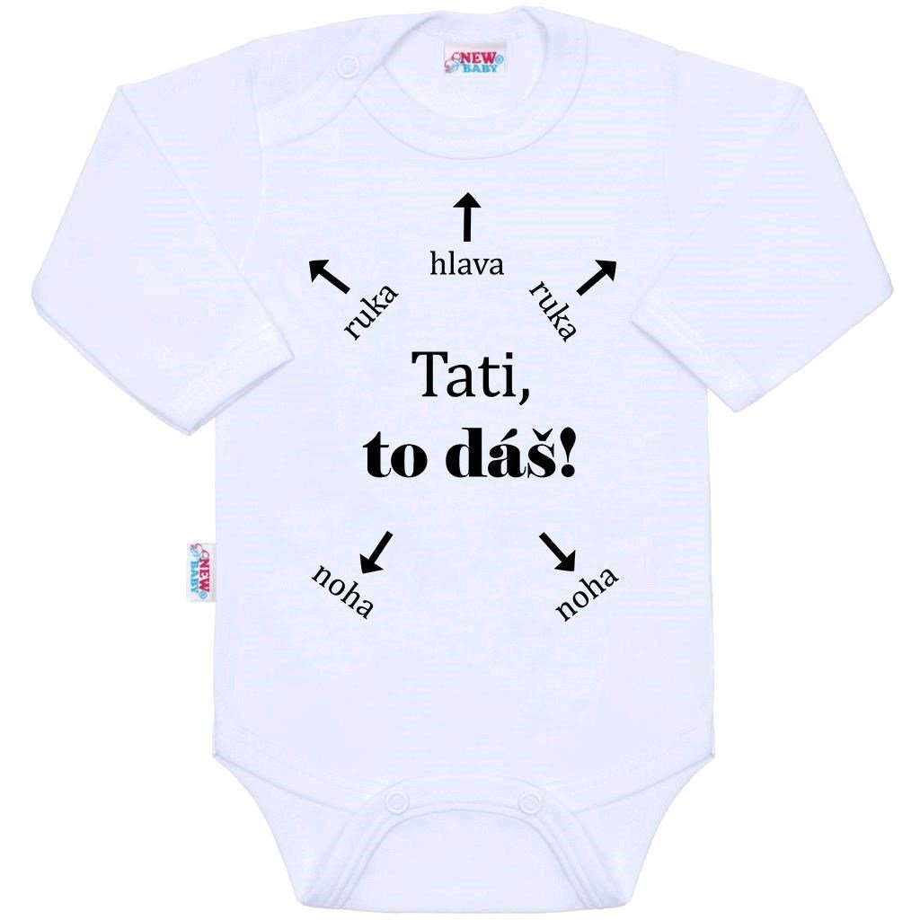 Originálne bavlnené dojčenské body s dlhým rukávom New Baby, s vtipným nápisom Tati, to dáš! Farby použité k potlači sú certifikované a vhodné pre bábätká. Je vyrobené z ...