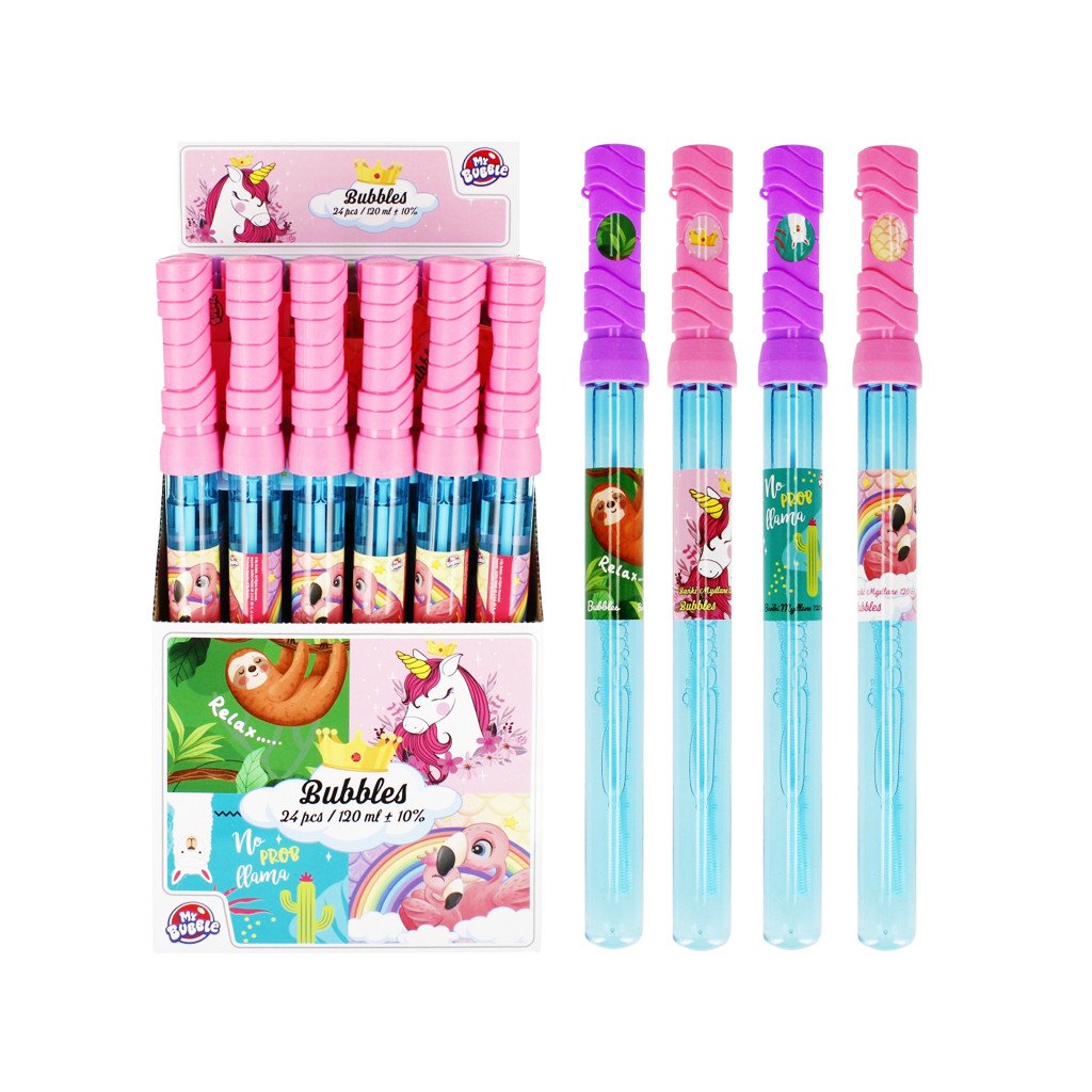 Bublifuk My bubble, má rozmer 37 cm a objem 120ml. Na výber zo štyroch variánt. Balené po 24 ks. Cena za 1 ks. Vhodné pre deti 3+....