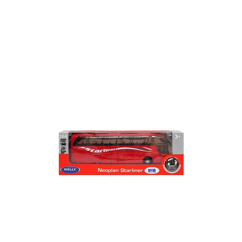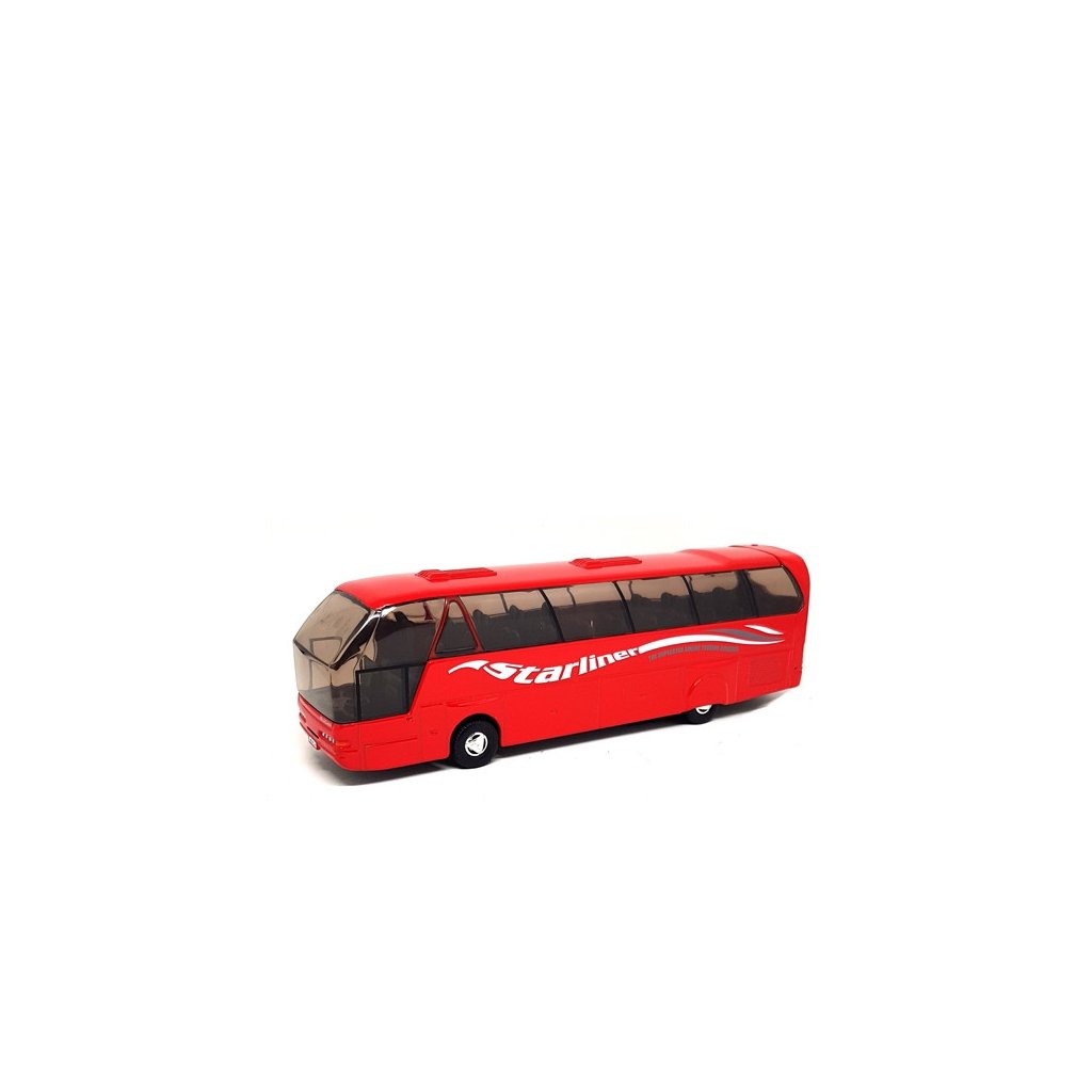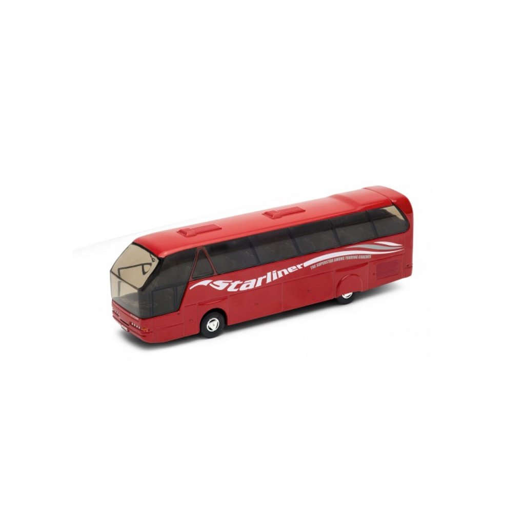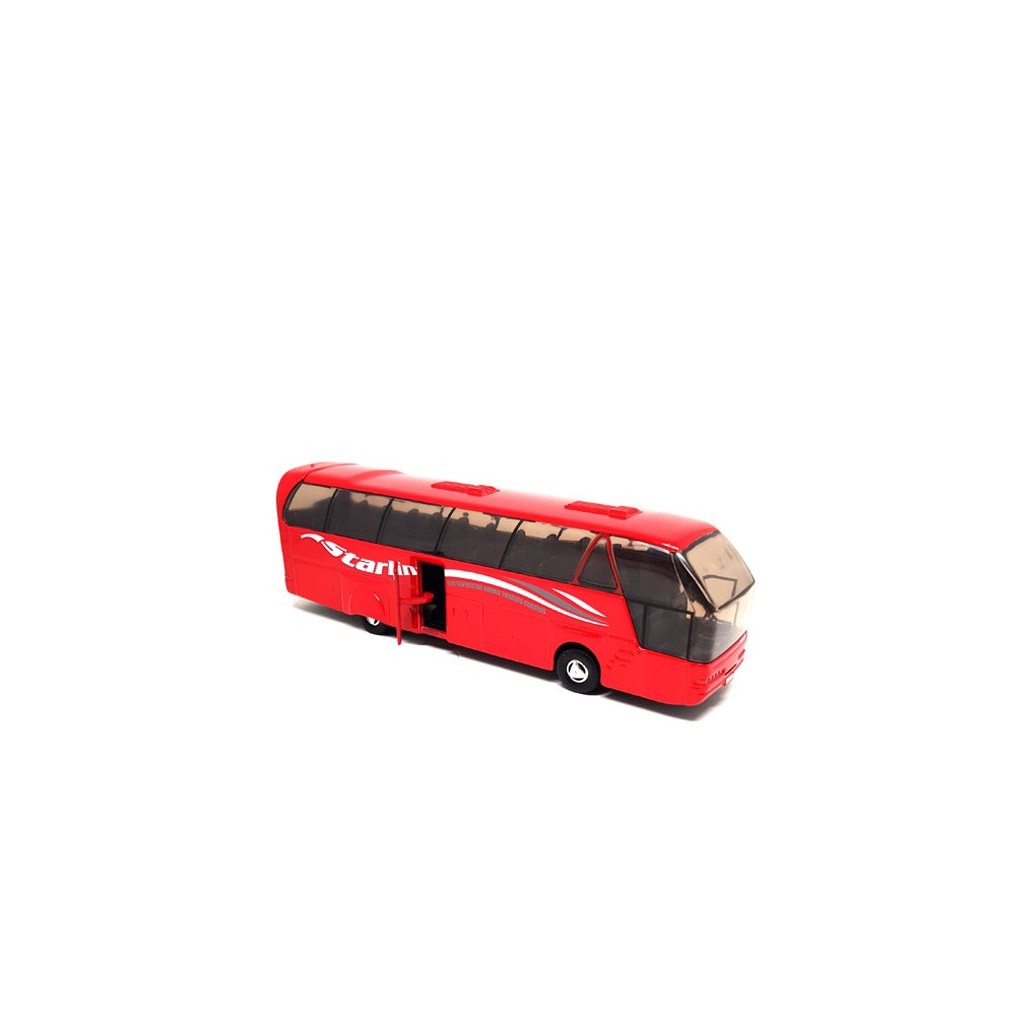 Model autobusa výrobcu Welly v mierke 164 s pohonom na spätné natiahnutie a s funkčnými strednými dverami a pekne spracovaným interiérom aj exteriérom.