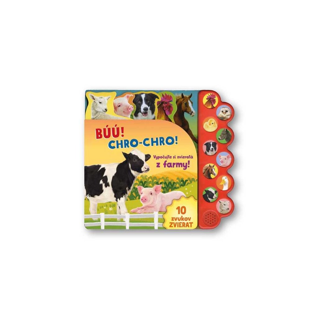 Búú! Chro-chro! Vypočujte si zvieratá z farmy!, po stlačení tlačidla si dieťa vypočuje, aké rôzne zvuky zvieratá vydávajú. Kniha obsahuje tri výmenné batérie. Kniha má 12 strán a ...
