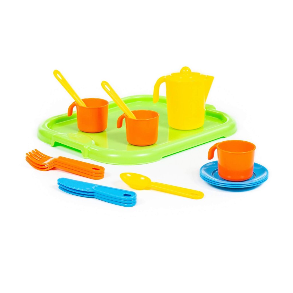 Čajový set pre troch s táckou, má rozmery 615х270х465 mm. Cena je za kus. Vhodné pre deti vo veku 3+ rokov. ...