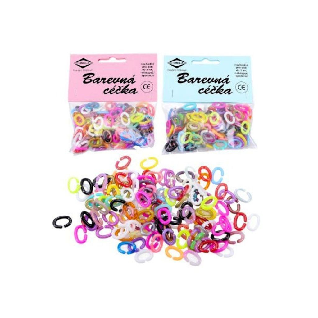Klasické farebné céčka sú skvelé na hranie, tvorenie reťazí aj ako veselý módny doplnok. Deti si s nimi môžu zahrať aj obľúbenú hru na čiaru. Český výrobok poteší kvalitným spracovaním a balenie obsahuje okolo 150 kusov. Rozmer (cm)