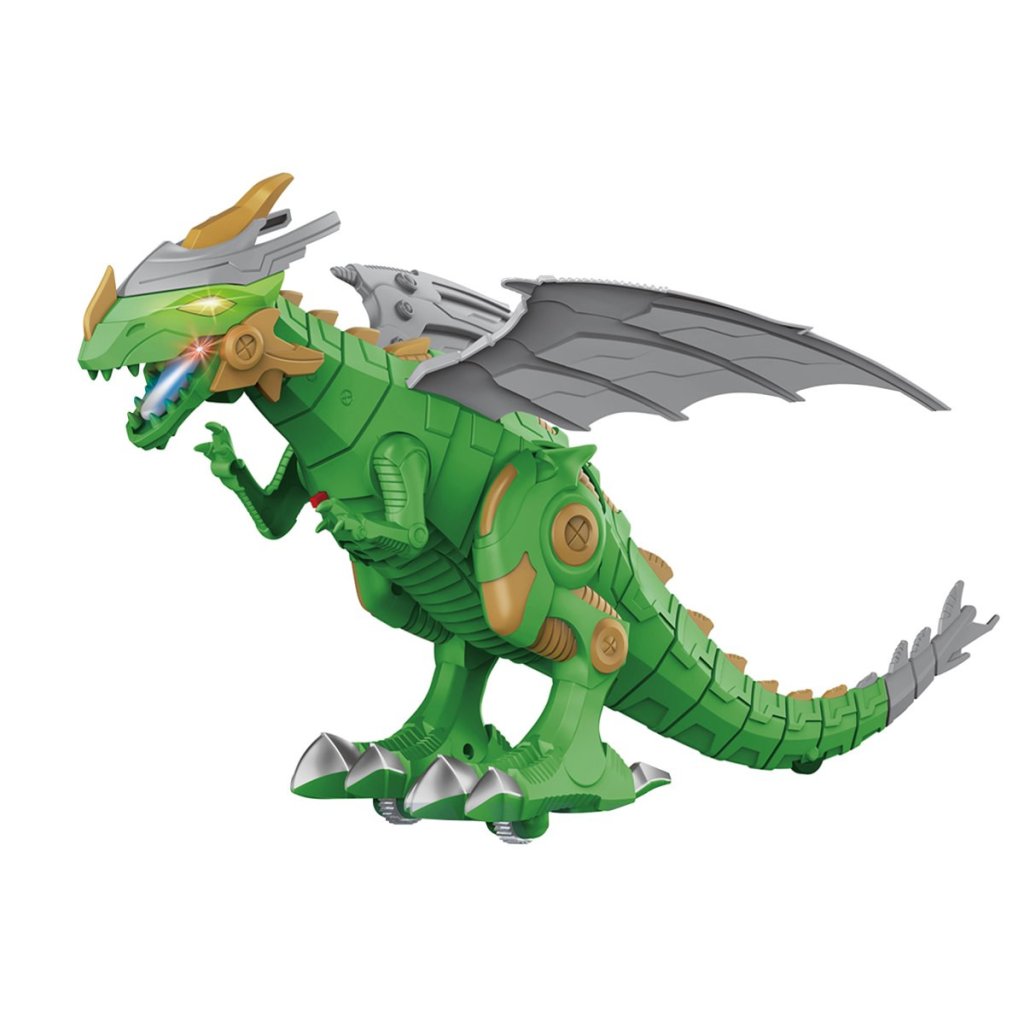 Chodiaci dinosaur s krídlami, po vložení batérií a zapnutí, bude chodiť dopredu, svietiť a vydávať reálny zvuk. Hračka vyžaduje 2ks 1,5V batérií typu AA, ktoré nie sú súčasťou balenia. Možnosť výberu z dvoch farebných prevedení. Má rozmery 20,5 x 32 cm. Cena je za kus. Vhodné pre deti vo veku 3+ rokov. Rozmer (cm)