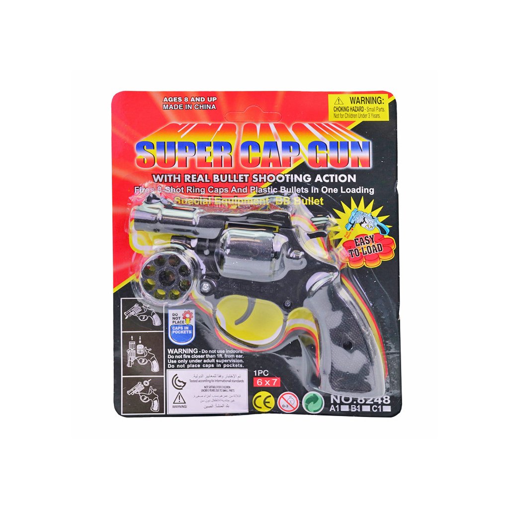Čierna strielajúca pištoľ, má rozmery 16x15x2 cm. Cena za 1 kus. Vhodné pre deti 8+. Rozmer (cm)