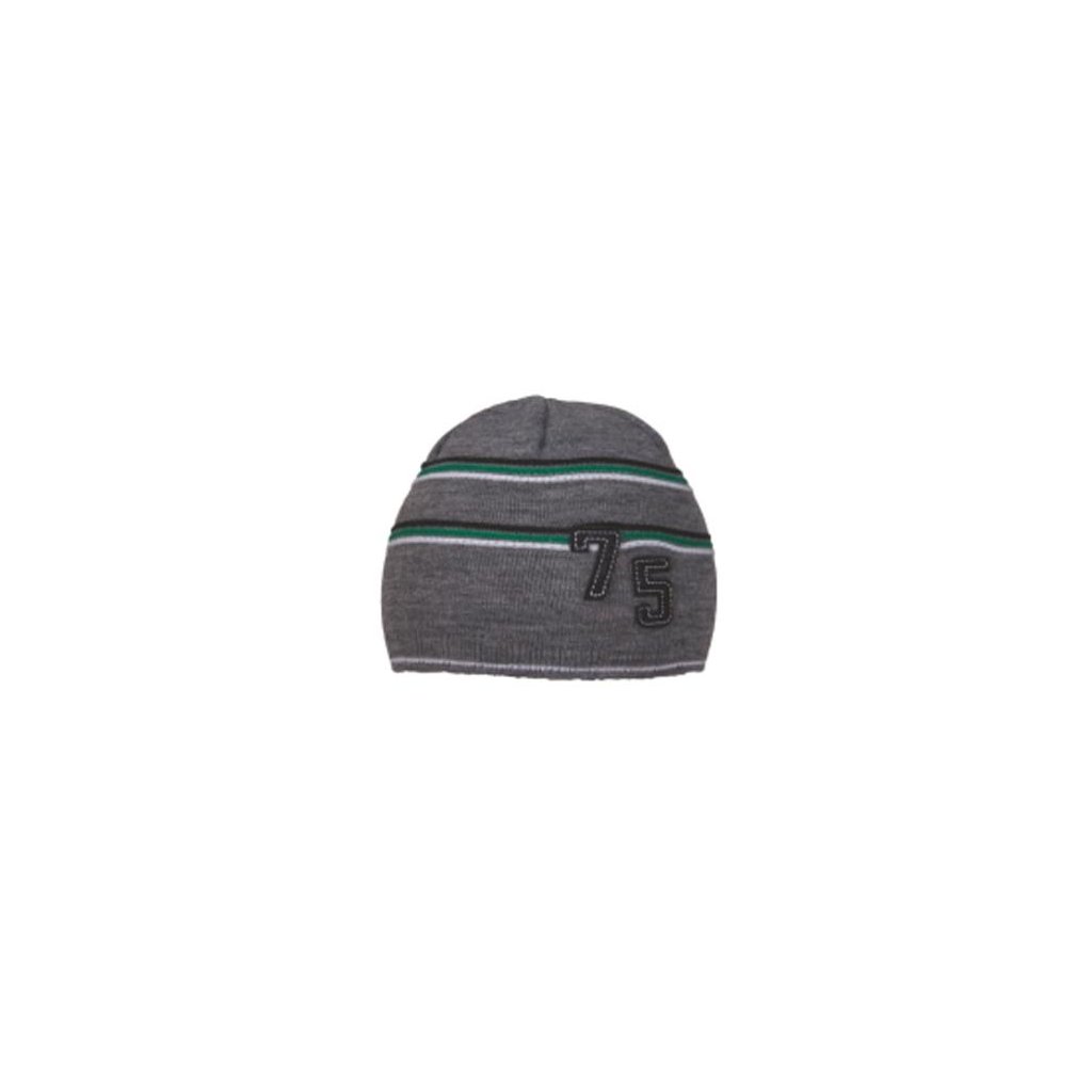 Detská čiapočka. Čiapočka je jednofarebná s pruhmi a číslom 75. Zloženie 100% akryl. Veľkosť 52-54.Vhodné aj pre staršie deti.