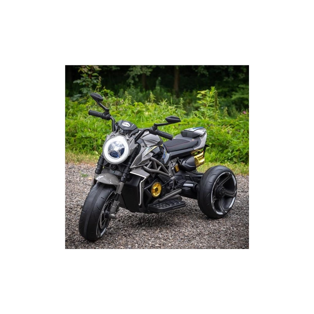 Detská elektrická motorka Calabre značky Baby Mix s LED osvetlením kolies a hudobným panelom prinesie deťom veľa zábavy a hodiny nezabudnuteľných jázd.