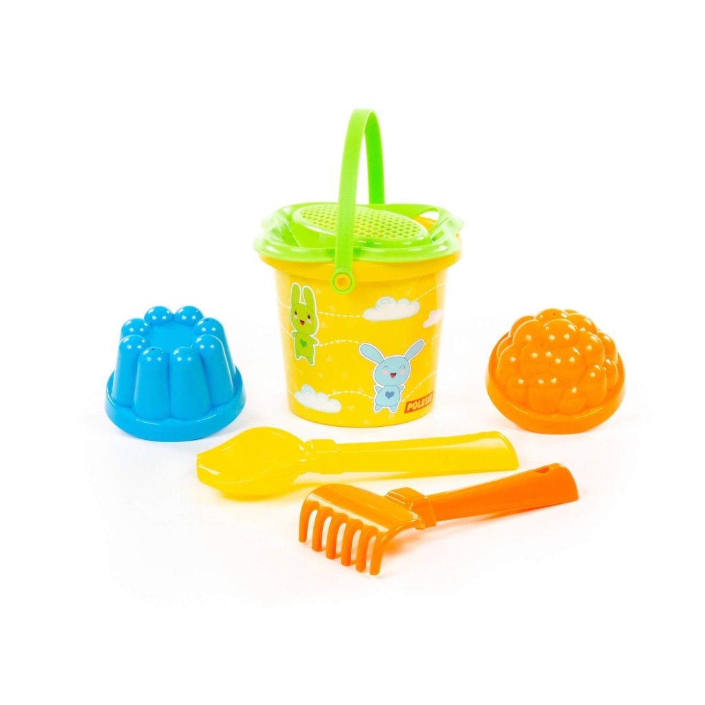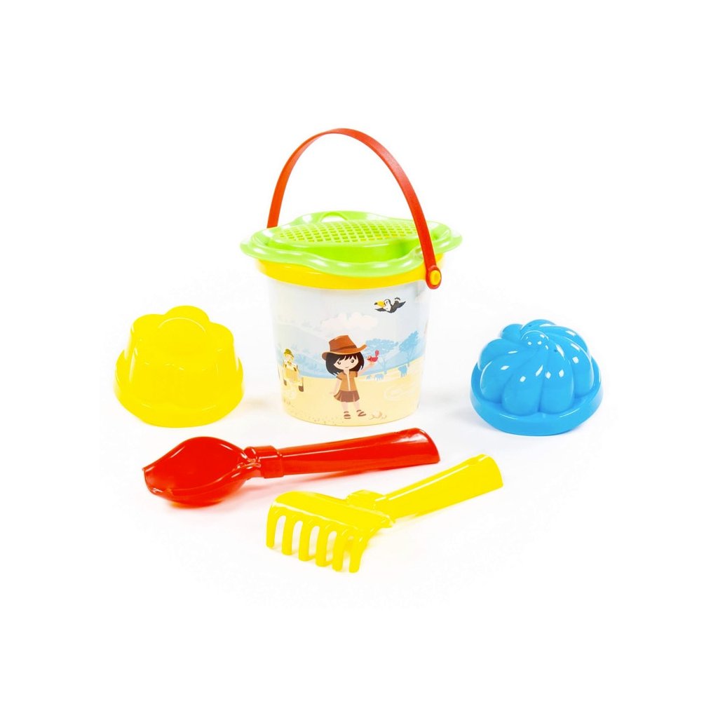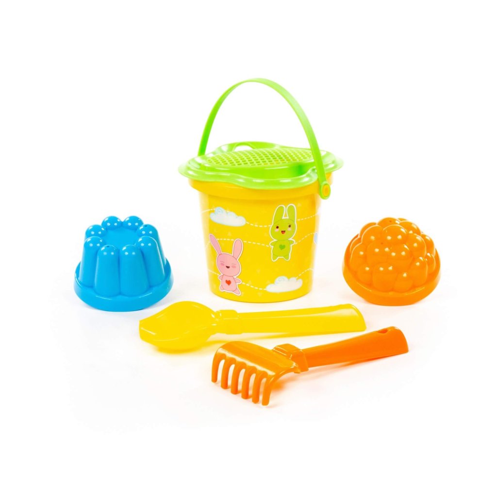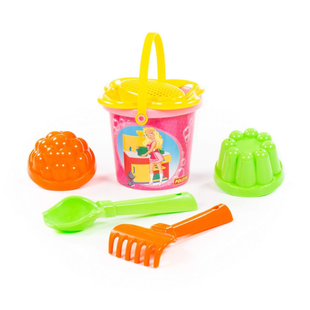 Súprava zo 6 častí, vedierko so sitkom s priemerom 12cm, lopatka, hrabličky a 2 formičky. Vyrobená v rôznych rozprávkových obrázkových verziách a farbách, k dispozícii podľa aktuálnej skladovej ponuky.