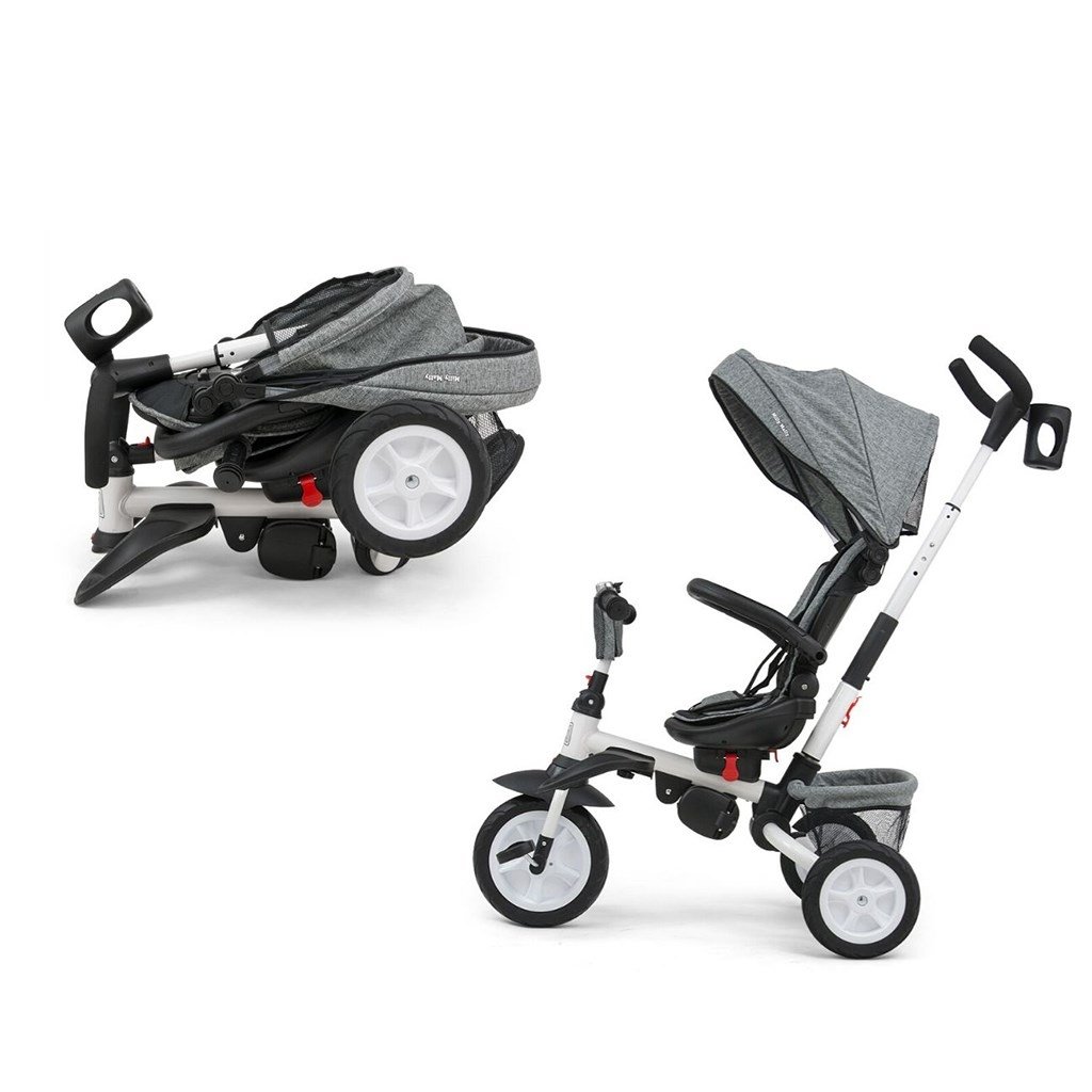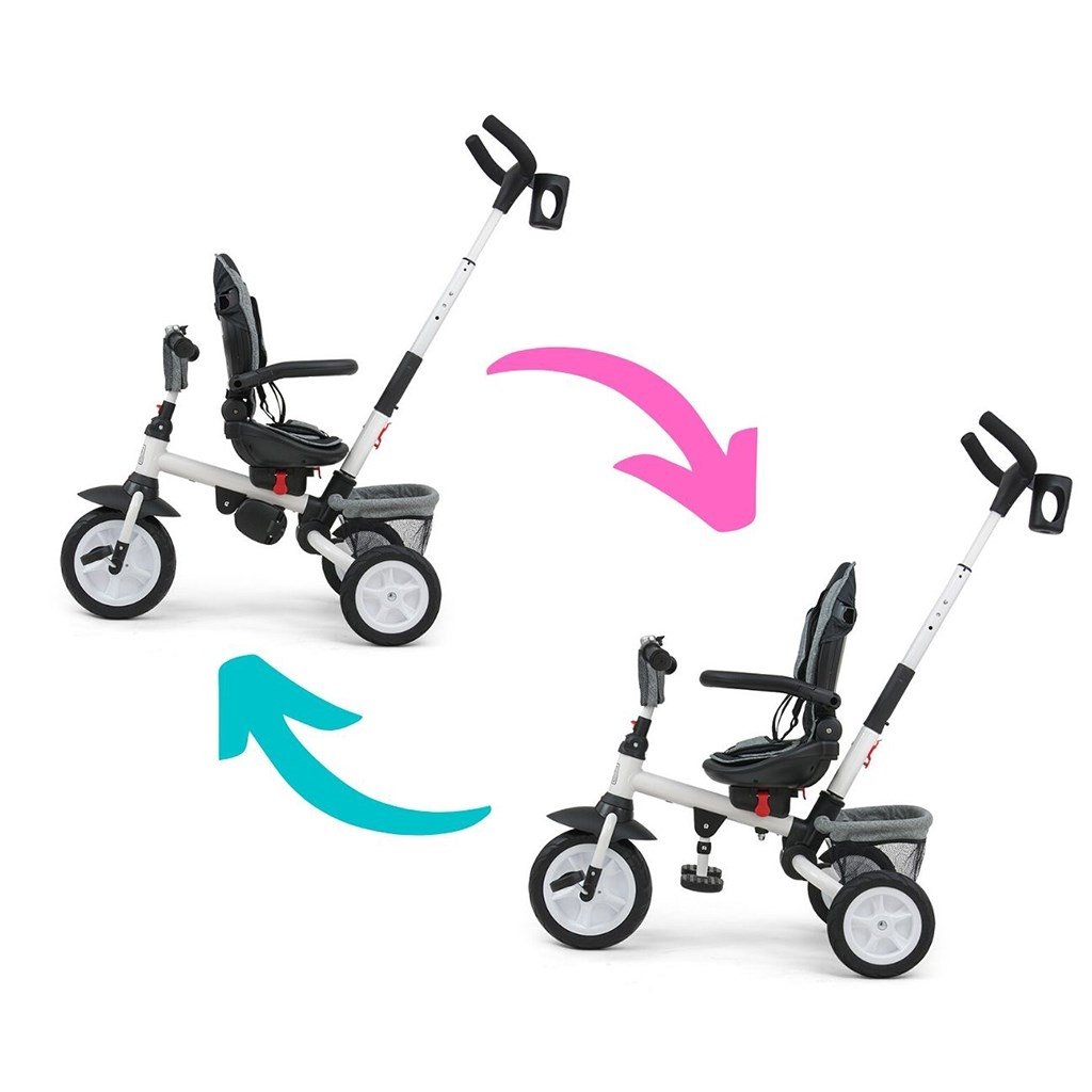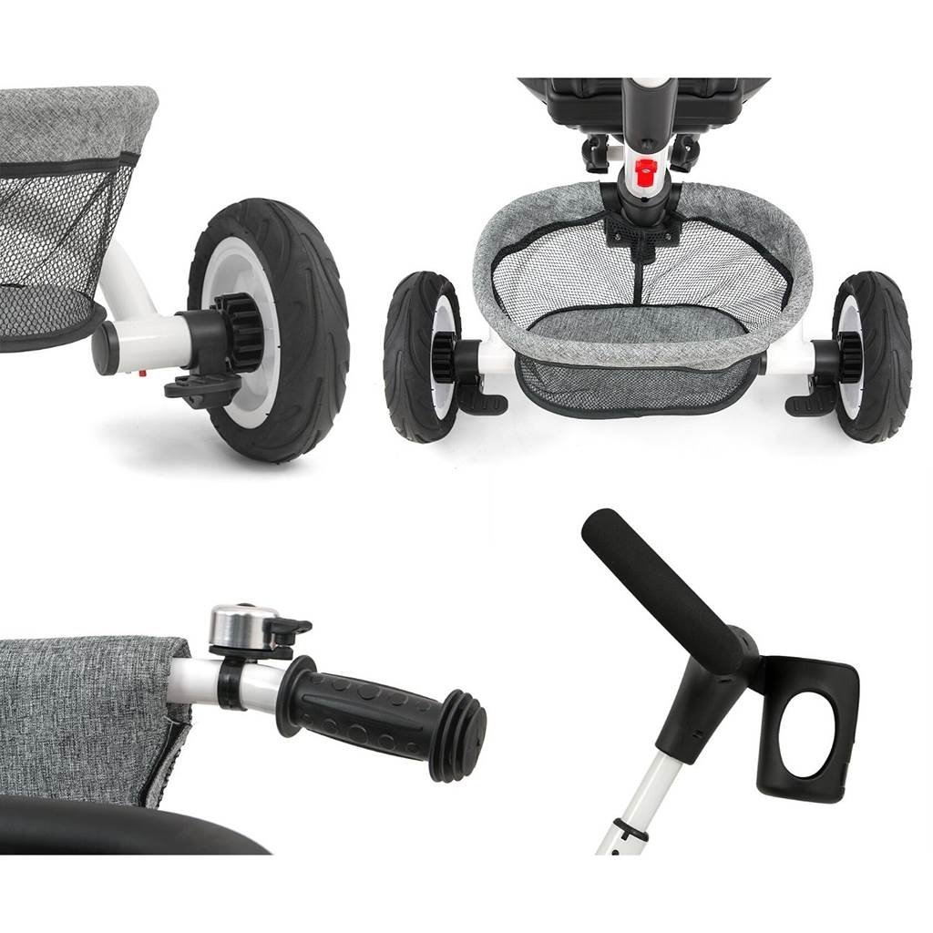 Je vyrobená z kvalitných a odolných materiálov. Má modernú konštrukciu, pohodlné a ergonomicky tvarované sedadlo, ktoré je otočné o 360 stupňov, čo umožní dieťaťu cestovať v smere alebo proti smeru jazdy. O pohodlie a bezpečie počas jazdy sa starjú bariérky, trojbodové bezpečnostné pásy, pohodlné stúpačky alebo gumové kolesá, ktoré skvele absorbujú narázy a poskytujú dobrú priľnavosť. Trojkolku môže ovládať ako dieťa, tak aj rodič pomocou nastaviteľnej rukoväte pre tlačenie. Po odobratí vodiacej tyče, sklápacej striešky, ktorá chráni pred slnkom alebo ostatných komponentov bude slúžiť ako trojkolka. Trojkolku je možné používať aj ako alternatívu golfového kočíka. Pre uloženie hračiek alebo potrieb pre dieťa je tu praktický úložný košík.