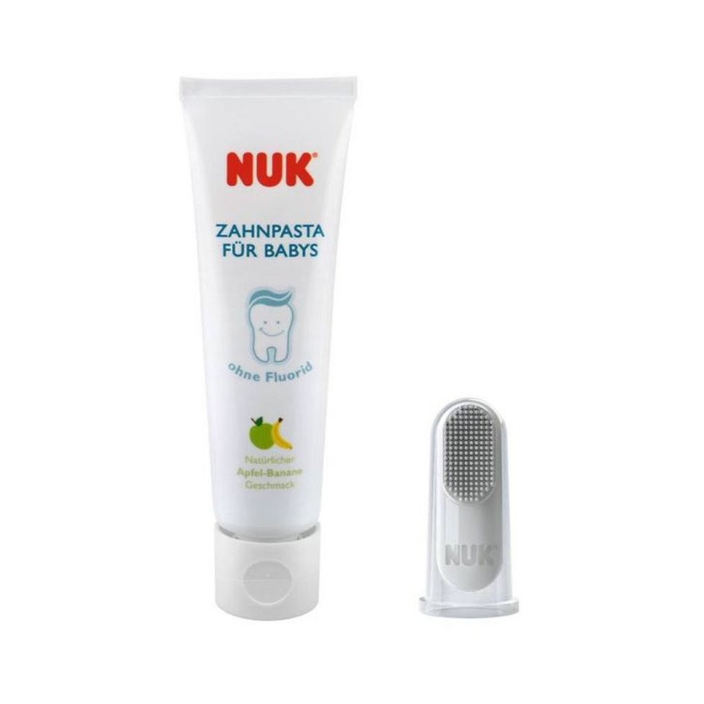 Detská zubná pasta a náprstok NUK. Na čistenie prvých zúbkov a ústnej dutiny, pre jemnú masáž ďasien. Pre deti od 3 mesiacov. Charakteristika: Zubná pasta: