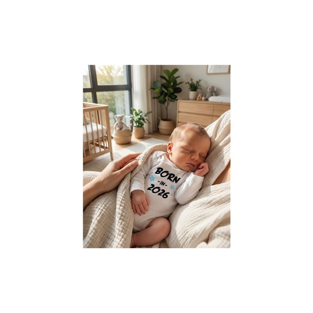 Detské body s potlačou New Baby BORN IN 2026 blue 62 (3-6m)