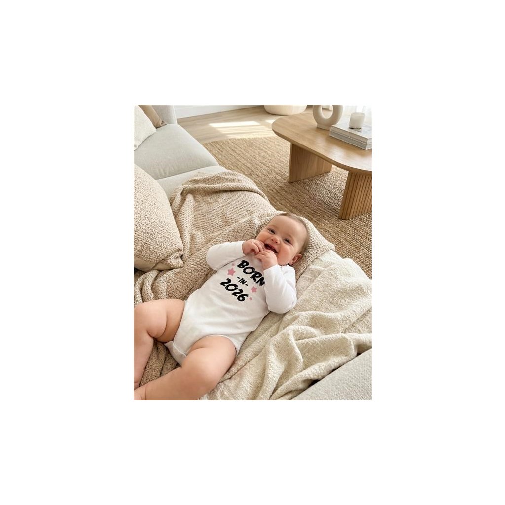 Detské body s potlačou New Baby BORN IN 2026 pink 86 (12-18m)