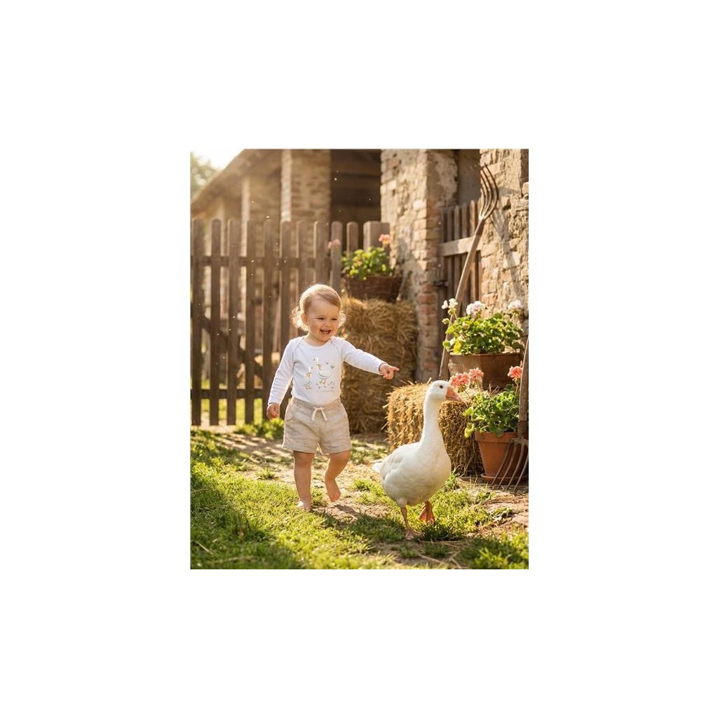 Naše detské body s dlhým rukávom je vyrobené zo 100% prírodnej bavlny, ktorá je jemná, mäkká, priedušná a veľmi príjemná k citlivej detskej pokožke. Zaručuje maximálne pohodlie pri nosení. Vďaka praktickému zapínaniu na cvočky na ramienku a medzi nožičkami je prebaľovanie a obliekanie rýchle a jednoduché.