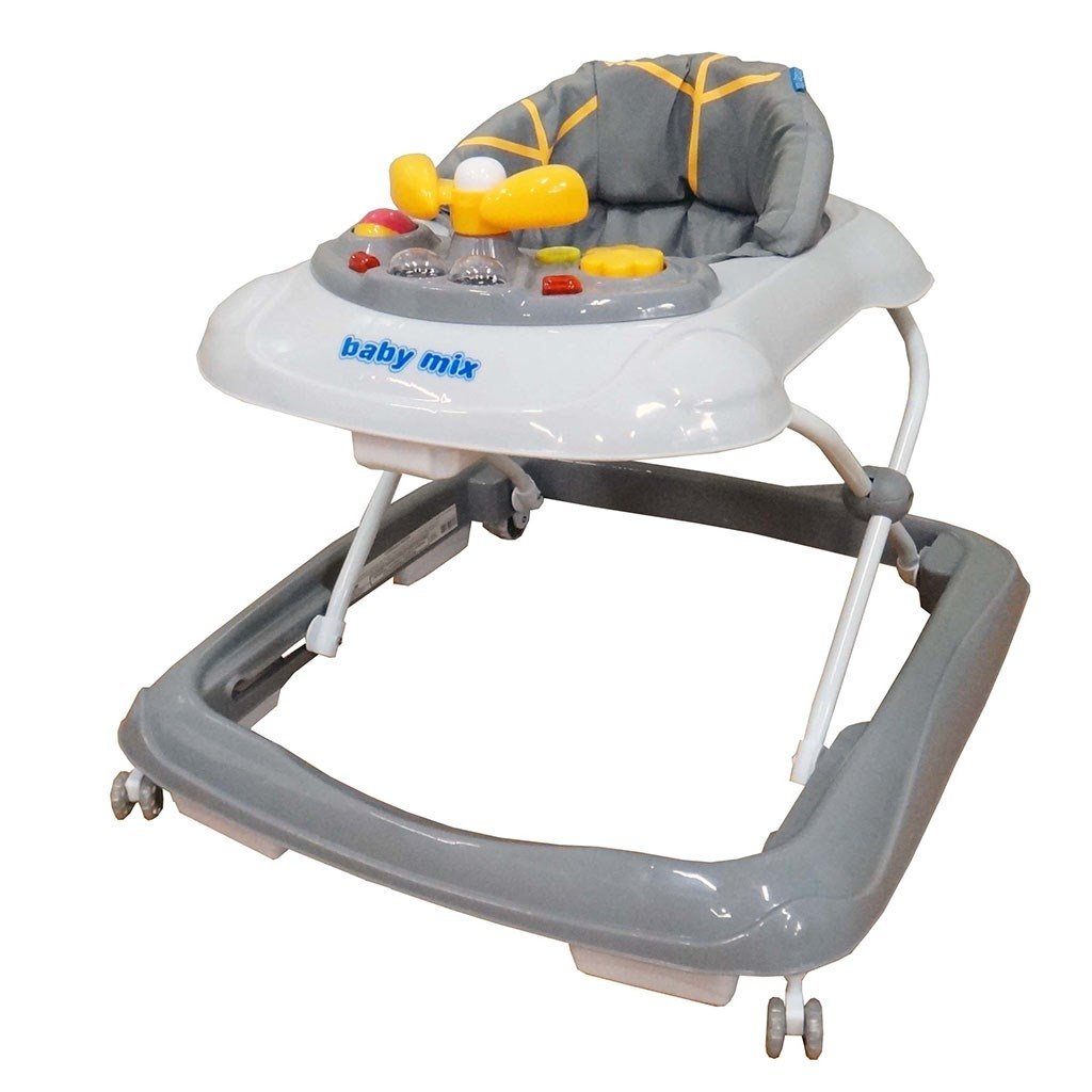 Multimediálne chodítko Baby Mix so silikónovými kolieskami. Chodítko je vybavené pohodlným ergonomicky tvarovaným sedadlom, ktoré zaisťuje správne držanie chrbtice. Multimediálny panel obsahuje rôzne svetelné efekty, trúbiaci volant, ktorým možno otáčať,, tlačidlá pre prehrávanie melódií a dve svetlá. Krásne chodítko s hračkami očarí malých objaviteľov a umožní im hrať sa ešte dlhšie. Chodítko je vybavené špeciálnym systémom proti prevráteniu, ktorý zaistí Vášmu dieťaťu pohodlie a bezpečnosť.