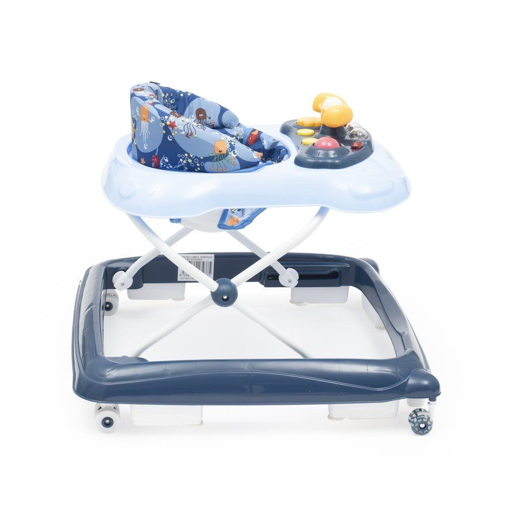 Detské chodítko Baby Mix s volantom a silikónovými kolieskami tmavo modrá
