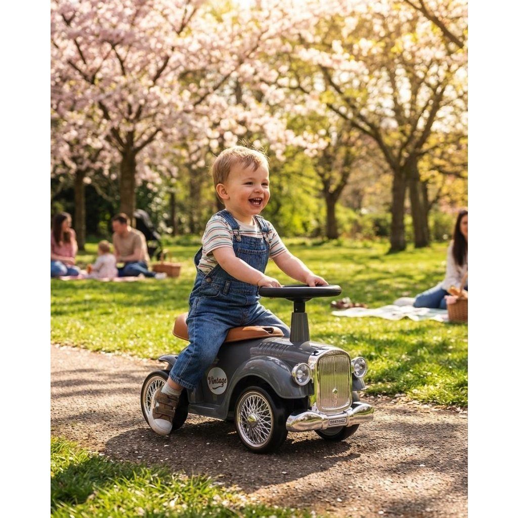Detské odrážadlo Retro pozýva malých cestovateľov na retro jazdu. Upúta svojimi oku lahodiacimi farbami. Je bohato vybavené. Toto autíčko má volant so zvukom a tvarované sedadlo. Poskytne vášmu dieťaťu skvelú zábavu pri riadení a rozvíja jeho zmysel pre rovnováhu a všeobecné motorické zručnosti. Autíčko má ľahkú plastovú konštrukciu a ergonomické tvary. Otočný volant autíčka Retro umožňuje náročné manévre doma aj na prechádzkach. Kolesá tohto krásneho vozidla sú vyrobené z mäkkej peny EVA. Retro autíčko môže vaše dieťa používať ako svoje prvé vozidlo so skutočným volantom a klaksónom, ďalej ako kočík s otvoreným úložným priestorom na hračky (malý kufor), imitáciou palivovej nádrže na zadnej časti vozidla a prednou časťou auta - mriežkou v striebornej farbe. Vozítko Royce je určené všetkým deťom, ktoré vedia samostatne sedieť. Vozítko je možné používať v interiéri aj exteriéri a spríjemní vášmu dieťaťu čas strávený na prechádzke.