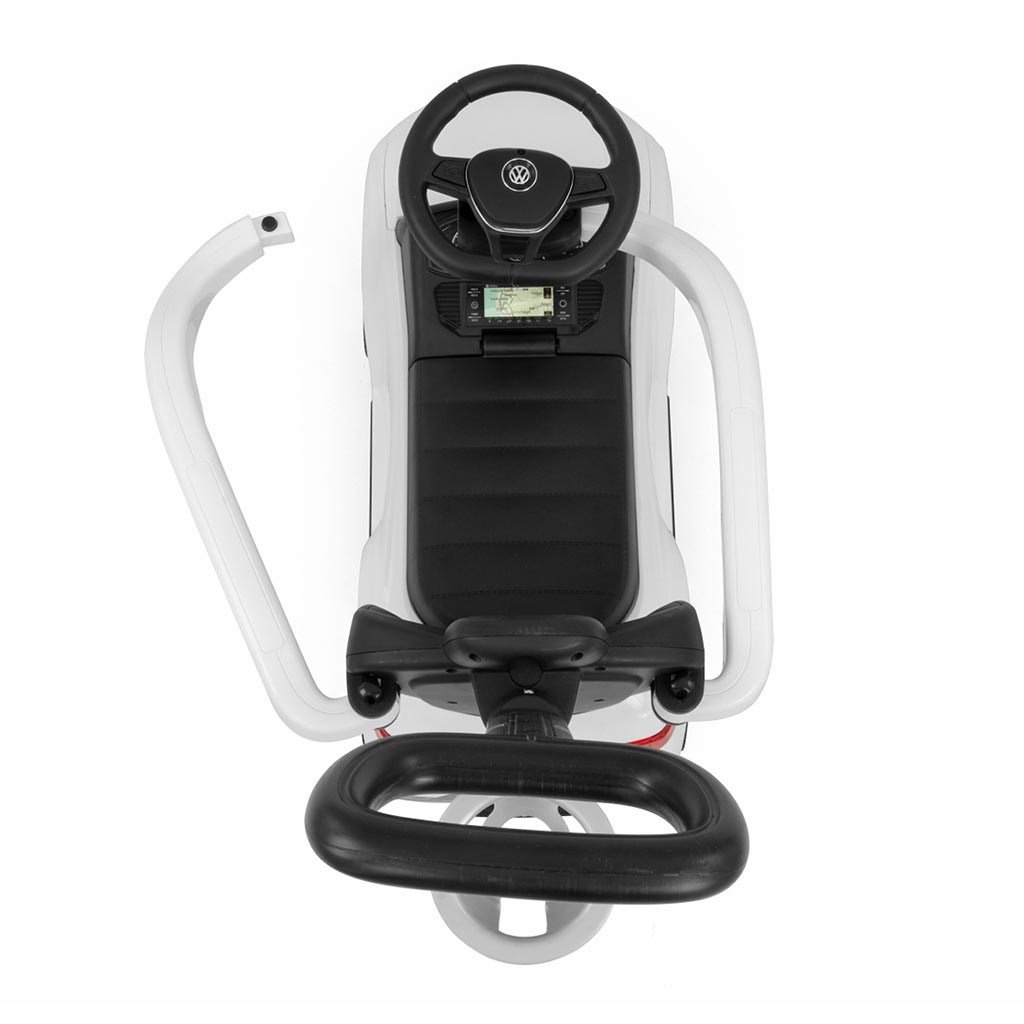 - Trojramenný volant s logom VW, vybavený klaksónom a veselými melódiami
