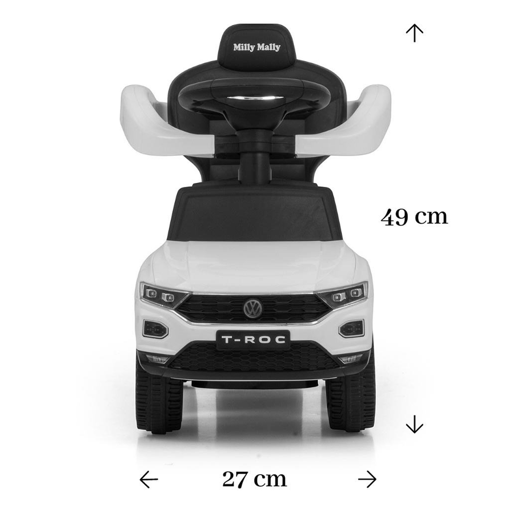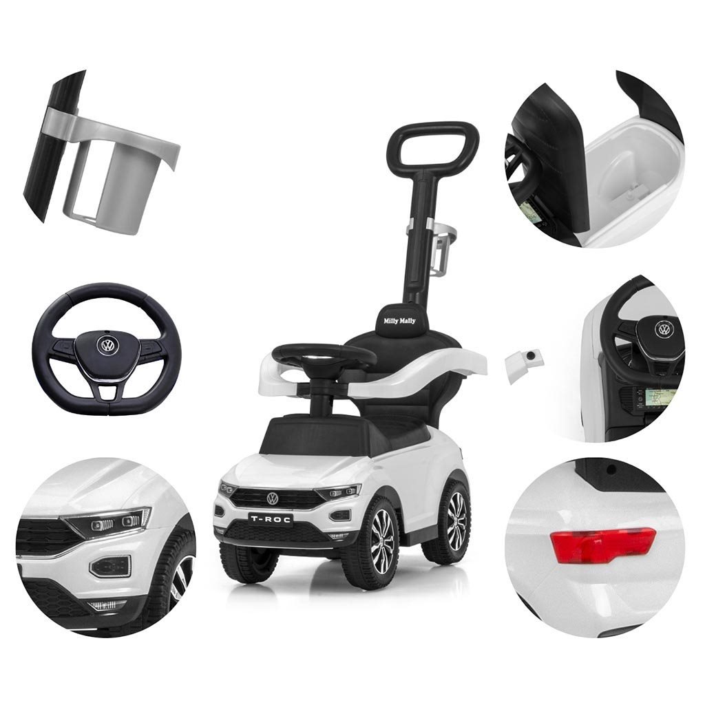Detské odrážadlo s vodiacou tyčou VOLKSWAGEN T-ROC Milly Mally biele (poškodený obal)