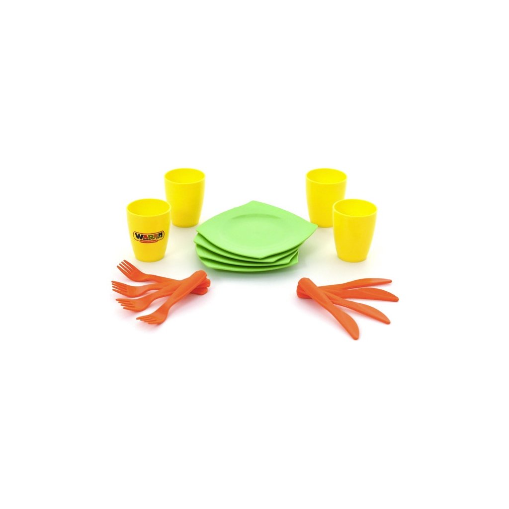 4ks šálky s priemerom 6 a výškou 7cm s tanierikmi a 4ks dezertných vidličiek a nožíkov. Súprava je certifikovaná pre deti od 1 roku veku. Rozmer (cm)