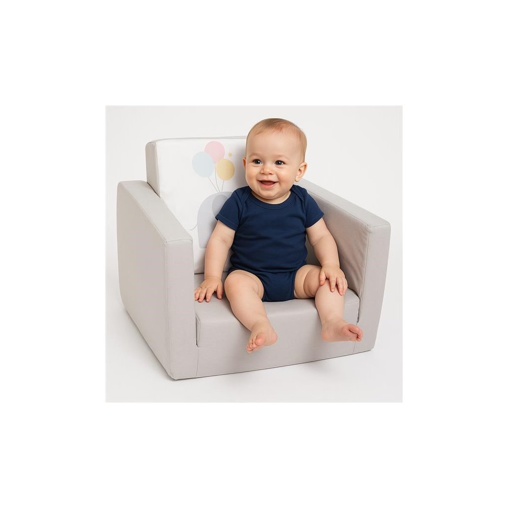 Detské rozkladacie kresielko New Baby je skvelým a veľmi obľúbeným doplnkom do detskej izbičky. Multifunkčné kreslo pre najmenšie deti je vyrobené z mäkkej a ľahkej peny, a má snímateľný bavlnený poťah, ktorý je možné prať. Vďaka zipsu je možné poťah jednoducho zložiť. Poťah má veľmi príjemné farby a je zdobený obrázkom sloníka. Deti milujú naše jednolôžkové kresielko pre jeho multifunkčnosť, ktoré je možné ľahko zložiť jedným pohybom. Dieťaťu zaistí komfort a vkusne doplní detskú izbičku. Kreslo môže slúžiť počas odpočinku či pozerania na rozprávky, alebo aj pri zábave. Rozmery: 37x45x42. Zloženie: poťah 100% bavlna, vnútorný materiál: polyuretánová pena.