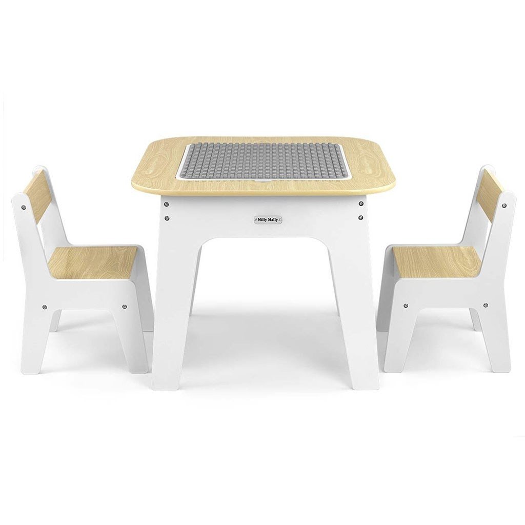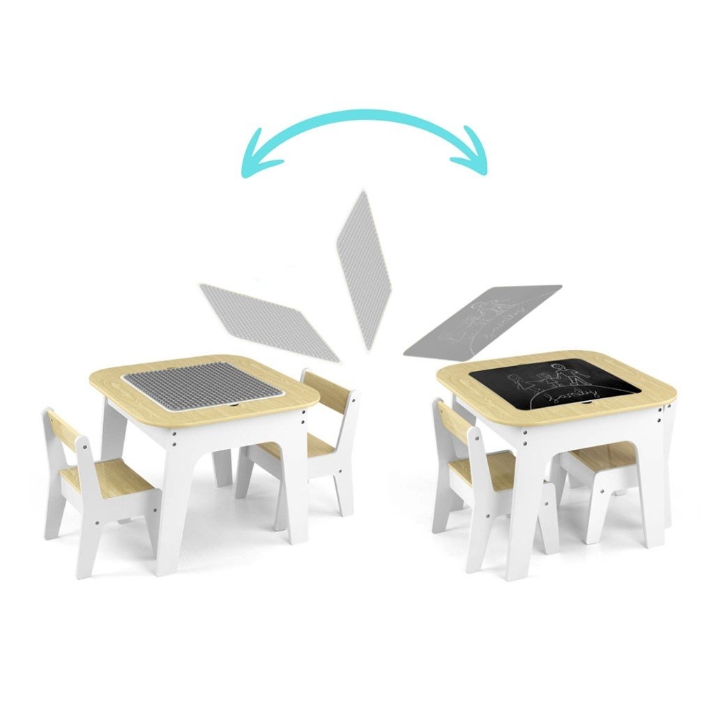 Set Olaf Blocks sa vyznačuje jedinečnou doskou stola – jedna strana je prispôsobená pre stavebné kocky, vďaka čomu je stolík ideálnym základom na stavanie. Druhá strana je hladká a ideálna na kreslenie, písanie alebo iné tvorivé aktivity. Doska je odnímateľná a pod ňou sa nachádza priestranný úložný priestor, ktorý uľahčuje uskladnenie hračiek, kociek alebo výtvarných potrieb, čo pomáha udržiavať poriadok.