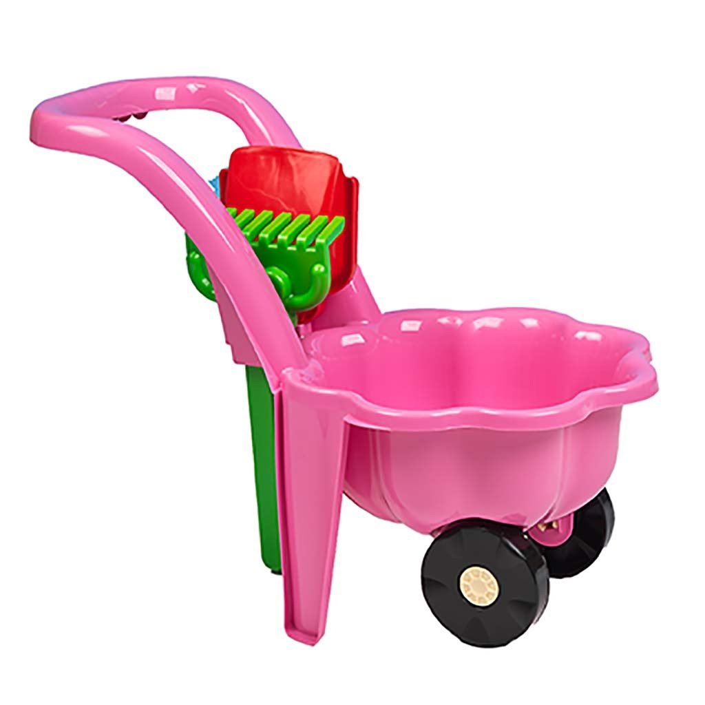 Detský záhradný fúrik s lopatkou a hrabličkami BAYO Sedmokráska ružový