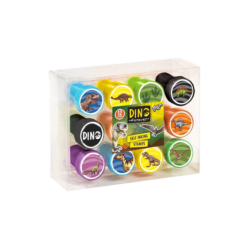 Dino pečiatky 12 ks - Samotlačné atramentové pečiatky Dino. 12 motívov v sade.