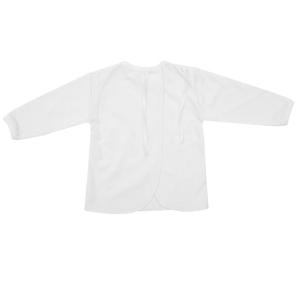 Dojčenská tenká bavlnená košieľka. Košieľka je biela so zaväzovaním vzadu na šnúrky. Zloženie 100% bavlna. Rozmer: dĺžka od ramienok cca 29 cm, obvod hrudníka cca 42 cm, dĺžka rukáva cca 24 cm. Veľkosť 68 (4-6m)