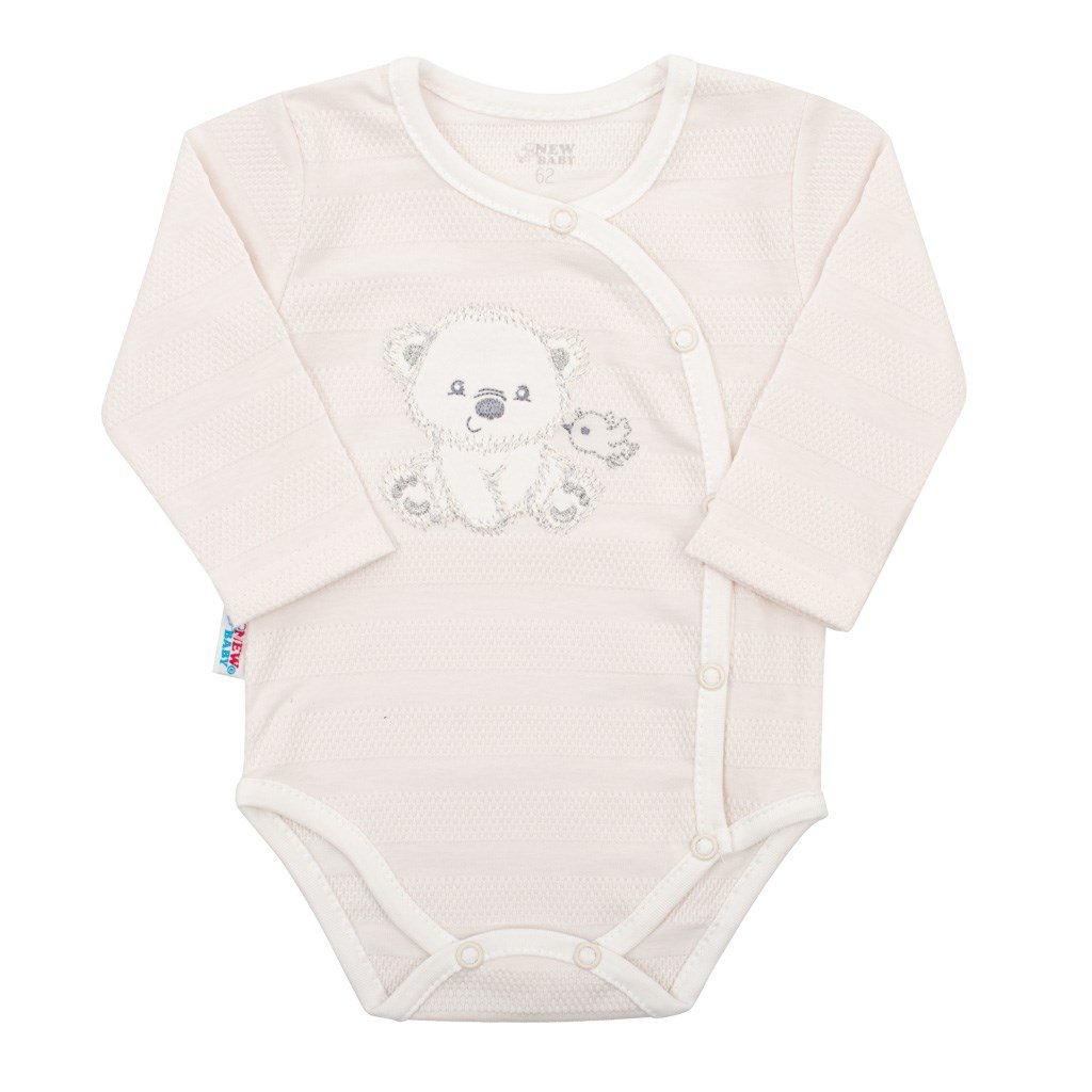 4-dielna súpravička New Baby Sweet Bear pre bábätká. Súpravička je vyrobená z kvalitného materiálu, ktorý je vhodný pre bábätká a je vhodná nielen do pôrodnice. Obsahuje celorozopínacie body s dlhým rukávom, dupačky, kabátik a čiapočku. Celorozopínacie body zdobí vyšitý obrázok medvedíka a vtáčika. Dupačky zdobí roztomilý obrázok medvedíka a vtáčika. Zapínanie na cvočky na ramienkach a medzi nožičkami. Kabátik je jednofarebný s krásnym lemovaním okolo ručičiek. Zapínanie je na cvočky po celej dĺžke. Čiapočka je krásne tvarovaná na ušká a zaväzuje sa na šnúrky. Súpravička je v praktickej Eko krabičke. Celá súpravička má nový neobyčajný design s atraktívnym vzorom látky. Zloženie: 100% bavlna. Veľkosť 50