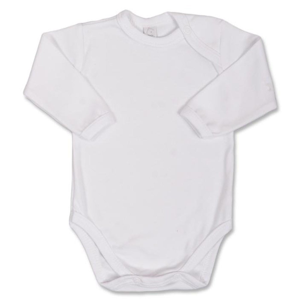 Klasické biele bavlnené dojčenské body Bobas Fashion s dlhým rukávom. Rozmery: obvod okolo hrudníka cca 50 cm, dĺžka od ramienok cca 47, dĺžka rukáva cca 28 cm. Zloženie: 100% bavlna....