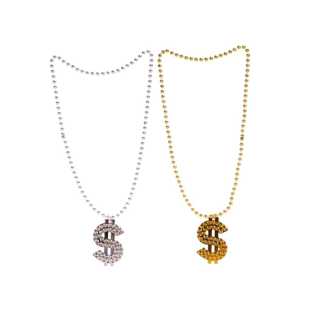 Štýlový náhrdelník s motívom dolára je výrazný doplnok na párty, karneval alebo tematické outfity. Ľahké prevedenie je pohodlné na nosenie....