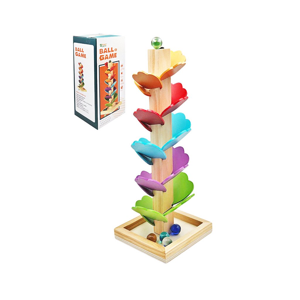 Drevená guľôčková dráha Veža, veselá hračka, pri ktorej deti sledujú padajúce guľôčky. Obsah sady je veža, 5× guľôčka a 20× lupeň. Má rozmery 29×12×12 cm. Cena je za kus. Vhodné pre deti vo veku 3+ rokov. Rozmer (cm)